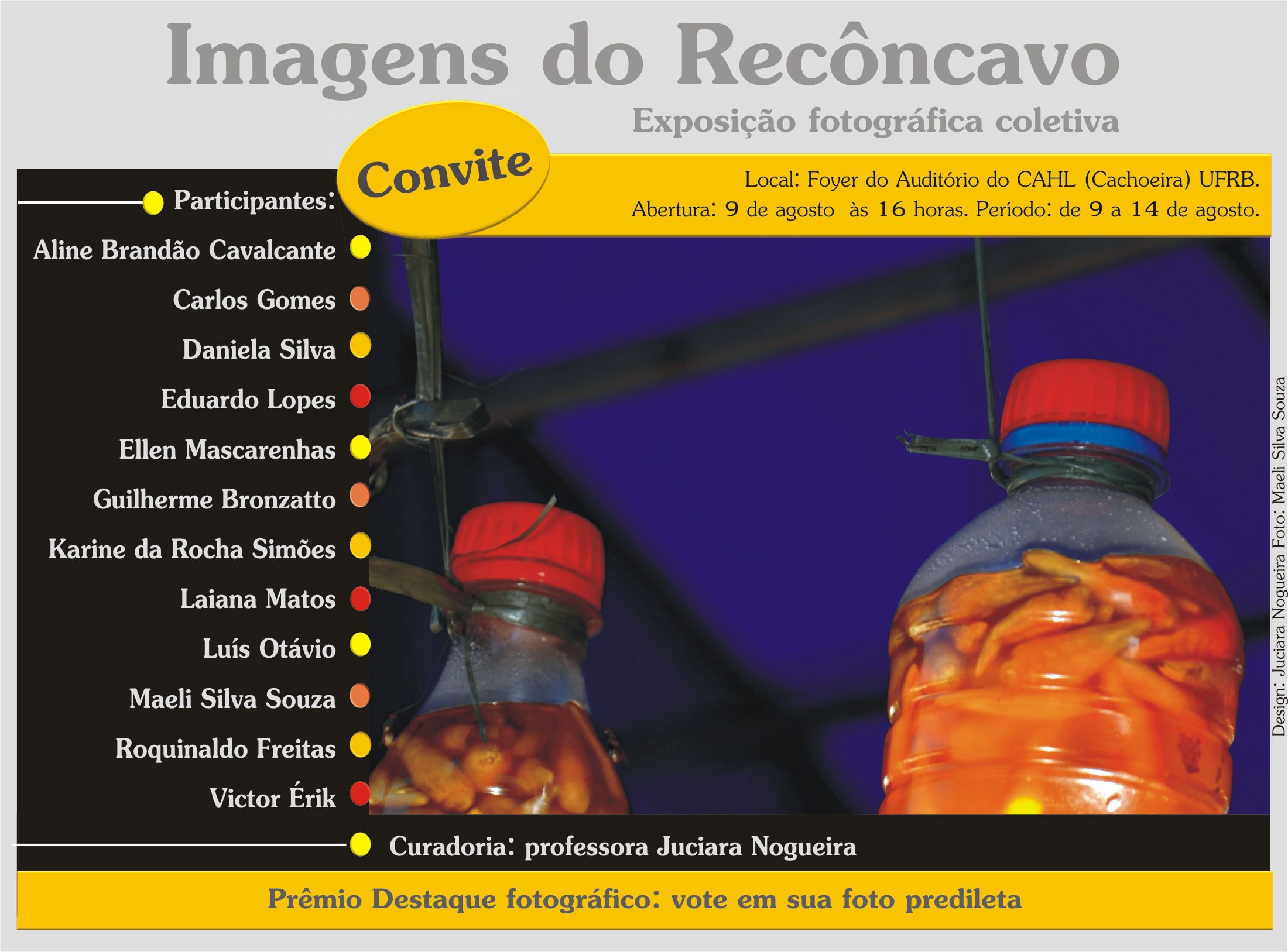 As fotografias apresentadas foram feitas por Aline Brandão Cavalcante, Carlos Gomes, Daniela Silva, Eduardo Lopes, Ellen Mascarenhas, Guilherme Bronzatto, Karine da Rocha Simões, Laiana Matos, Luís Otávio, Maeli Silva Souza, Roquinaldo Freitas e Victor Érik. O horário de visitação é das 08h00 às 8h00.