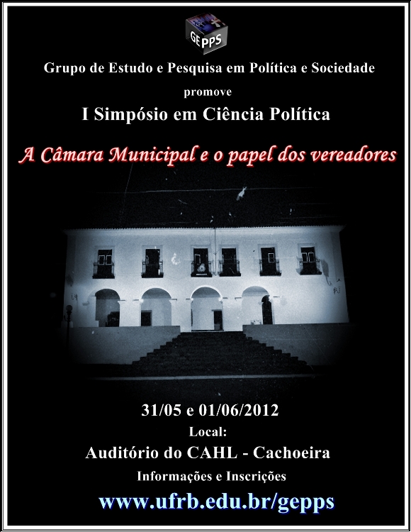 O I Simpósio em Ciência Política, intitulado “A Câmara Municipal e o papel dos vereadores”, discute com a comunidade a importância do poder legislativo municipal na vida das cidades e no cotidiano dos seus cidadãos. O Simpósio acontece nos dias 31 de maio e 01 de junho de 2012 no auditório do Centro de Artes, Humanidades e Letras (CAHL) da Universidade Federal do Recôncavo da Bahia (UFRB) em Cachoeira.