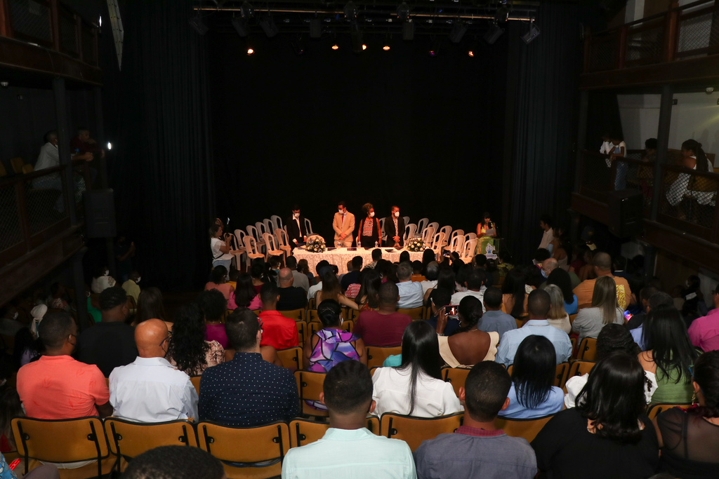 Após dois anos com atividades presenciais suspensas, aos poucos a rotina acadêmica retorna à normalidade. Foi na última quinta-feira (25) no Cine Theatro Cachoeirano, em Cachoeira (BA), que o Centro de Artes, Humanidades e Letras (CAHL) da Universidade Federal do Recôncavo da Bahia (UFRB) pôde realizar a cerimônia de Colação de Grau de forma presencial, com a participação dos discentes, docentes e técnicos-administrativos da instituição. Por outro lado, estudantes que não puderam se deslocar para o Recôncavo se graduaram através de videoconferência, formato com mesmo valor técnico. Ao total, o evento colocou à disposição do mercado de trabalho 42 profissionais de Jornalismo, Publicidade e Propaganda, Gestão Pública e Serviço Social.