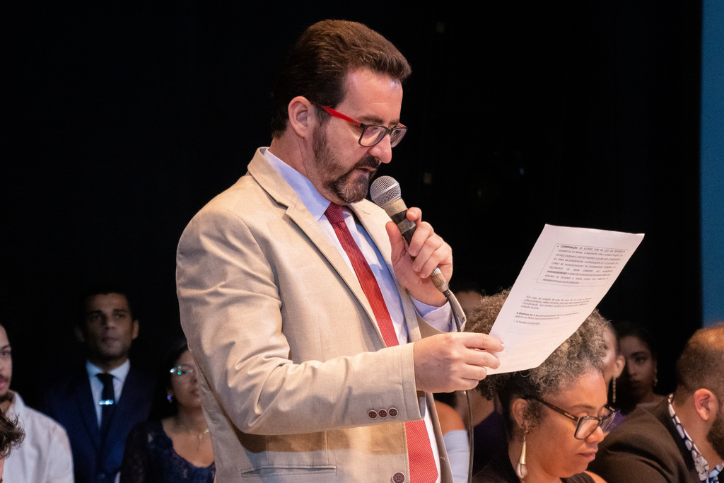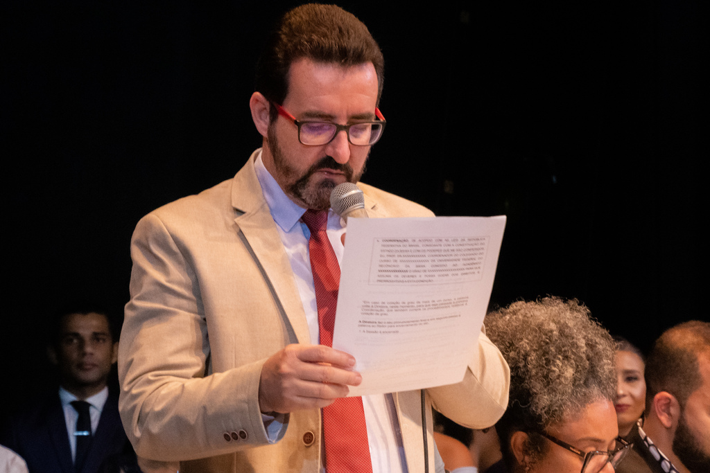Emocionado, o Reitor Fábio Josué pontuou em seu discurso a necessidade da UFRB como transformadora social: “essa Universidade é formada por alunos oriundos de escolas públicas, de comunidades quilombolas, de comunidades indígenas, de comunidades LGBTQIA+, portadores de necessidades especiais, camponeses, mulheres, que pintam essa Universidade de povo e mostra a representação da sociedade do Recôncavo, aqui neste espaço. Nós muito nos orgulhamos de construir essa Universidade tão singular”.