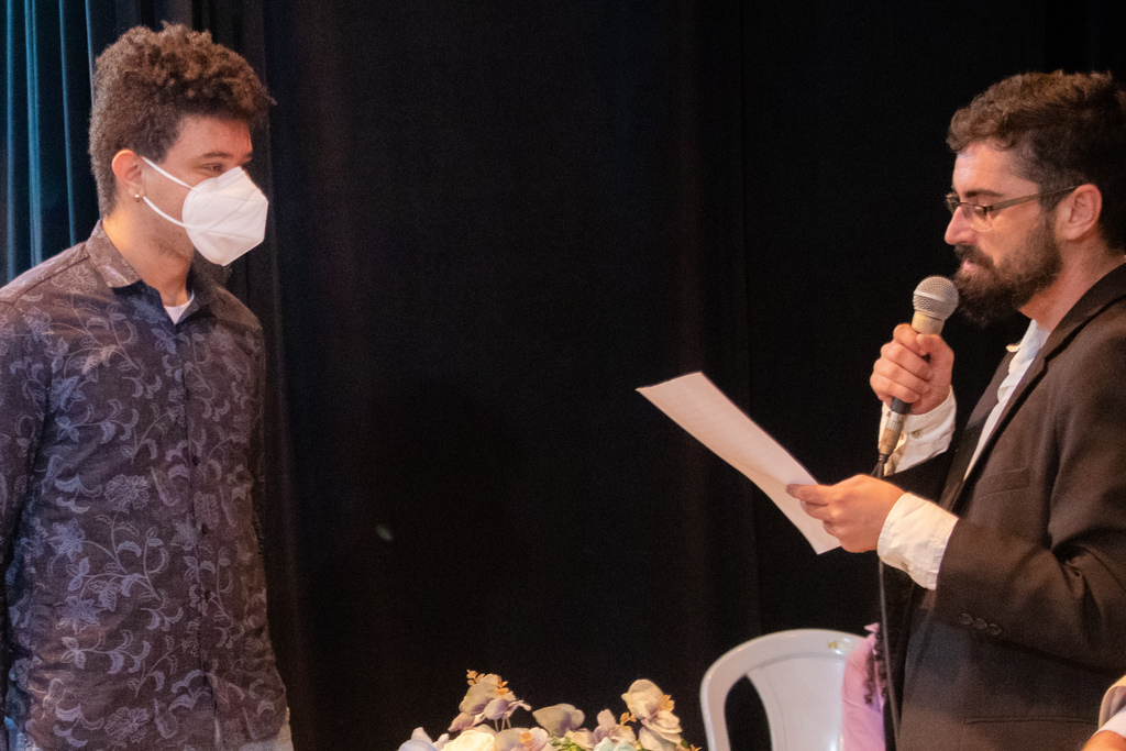 De Paraty, no litoral sul do Rio de Janeiro, o formando em Jornalismo Matheus Ribeiro participou da colação um dia depois do formato presencial, no dia 26 de agosto. Iniciada pontualmente às 10h, a chamada contava com a diretora Dyane Brito e o coordenador do curso Guilherme Fernandes. Após a feitura do juramento, que traz, dentre outros aspectos, o compromisso com a verdade e o bom uso da informação, os participantes falaram do reencontro presencial nos programas de ensino da Universidade e da alegria do momento. “Foram anos especiais demais para mim. Todos que me cercaram, me enriqueceram de alguma maneira. Sou muito agradecido pelas trocas. Sigo jornalista a partir de agora.”