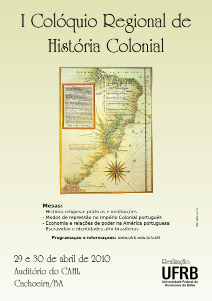 Os estudos acerca do período colonial têm sido gradativamente objeto de pesquisas e reflexões nas universidades públicas baianas. Com o objetivo de promover um maior estreitamento dos laços entre os pesquisadores dessas instituições e uma maior divulgação dos estudos que envolvam esta temática, será realizado nos dias 29 e 30 de Abril o I Colóquio Regional de História Colonial.