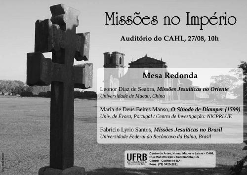 Na sexta-feira, 27 de agosto de 2010, às 10 horas da manhã, será realizada no auditório do CAHL a mesa redonda "Missões no Império". O evento conta com a seguinte programação: