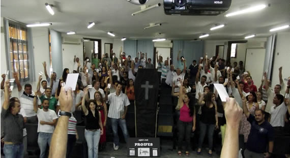 Em assembleia realizada na manhã de hoje, na cidade de Cruz das Almas, os professores da UFRB decidiram voltar às atividades acadêmicas na próxima segunda-feira (17), com indicativo de retorno às aulas no dia 24 de setembro, já que esta é uma etapa que necessita da discussão prévia do calendário. Os docentes apresentarão uma proposta de calendário ao Conselho Acadêmico (CONAC) e à reitoria. Na Universidade Federal do Recôncavo da Bahia a greve dos professores começou dia 21 de maio deste ano. Um novo calendário acadêmico vai ser publicado.