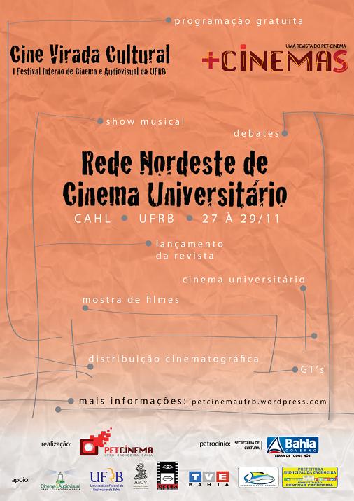 Entre os dias 27 e 29 de novembro, o PET Cinema vai realizar três eventos no Convento do Carmo. O primeiro será uma mesa de grupos de trabalho da Rede Nordeste de Cinema Universitário, que discutirá a produção e distribuição das obras audiovisuais dentro do circuito regional e nacional, contando com nomes importantes dentro do cenário e circuito de cinema universitário do Nordeste e do Brasil.