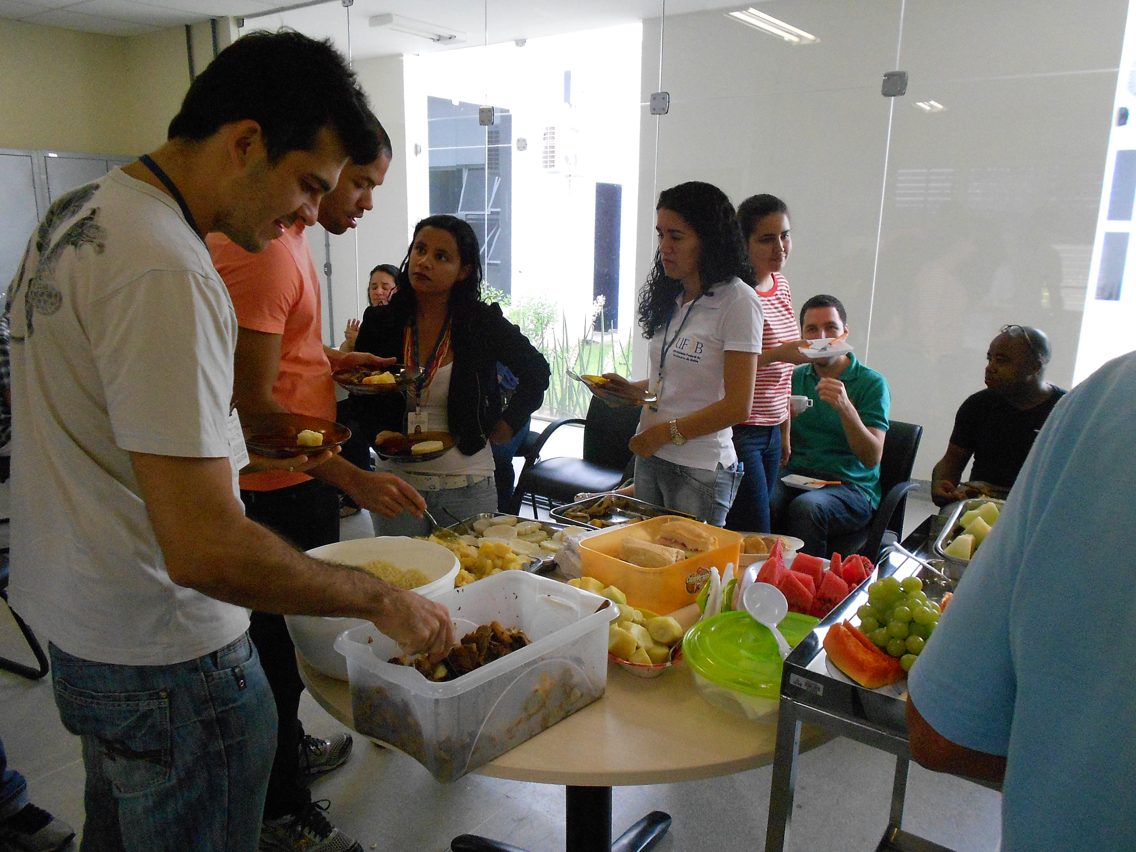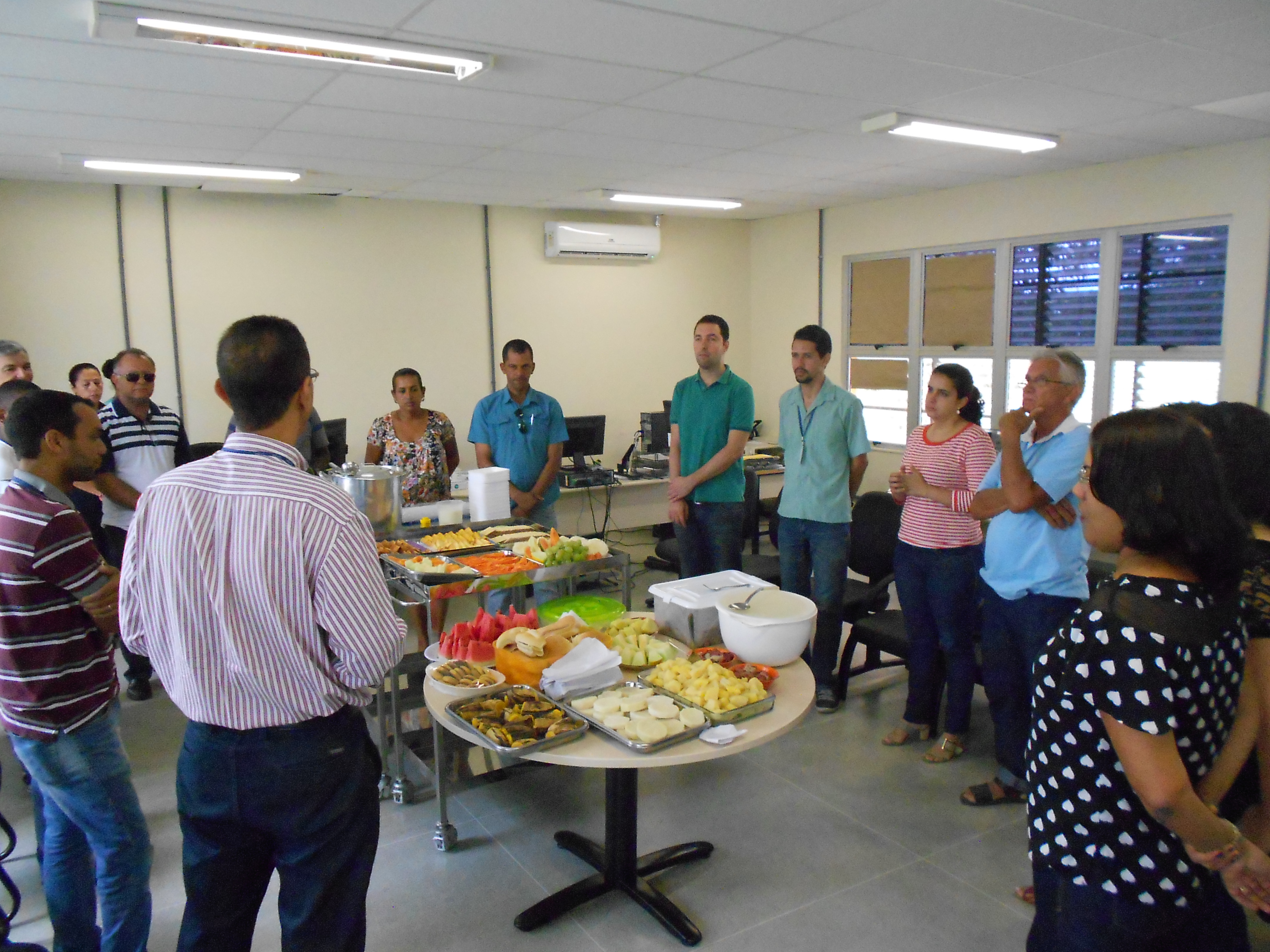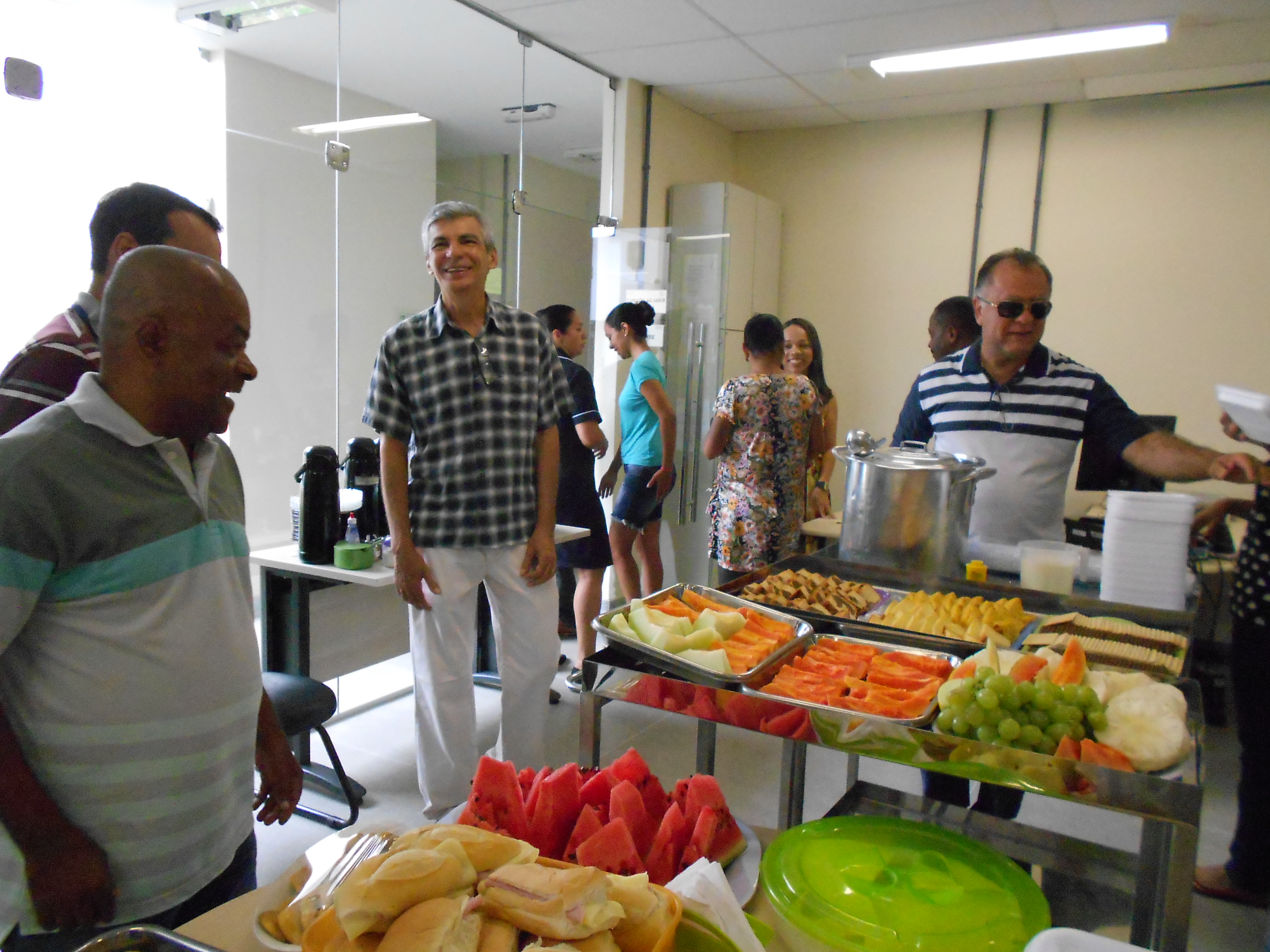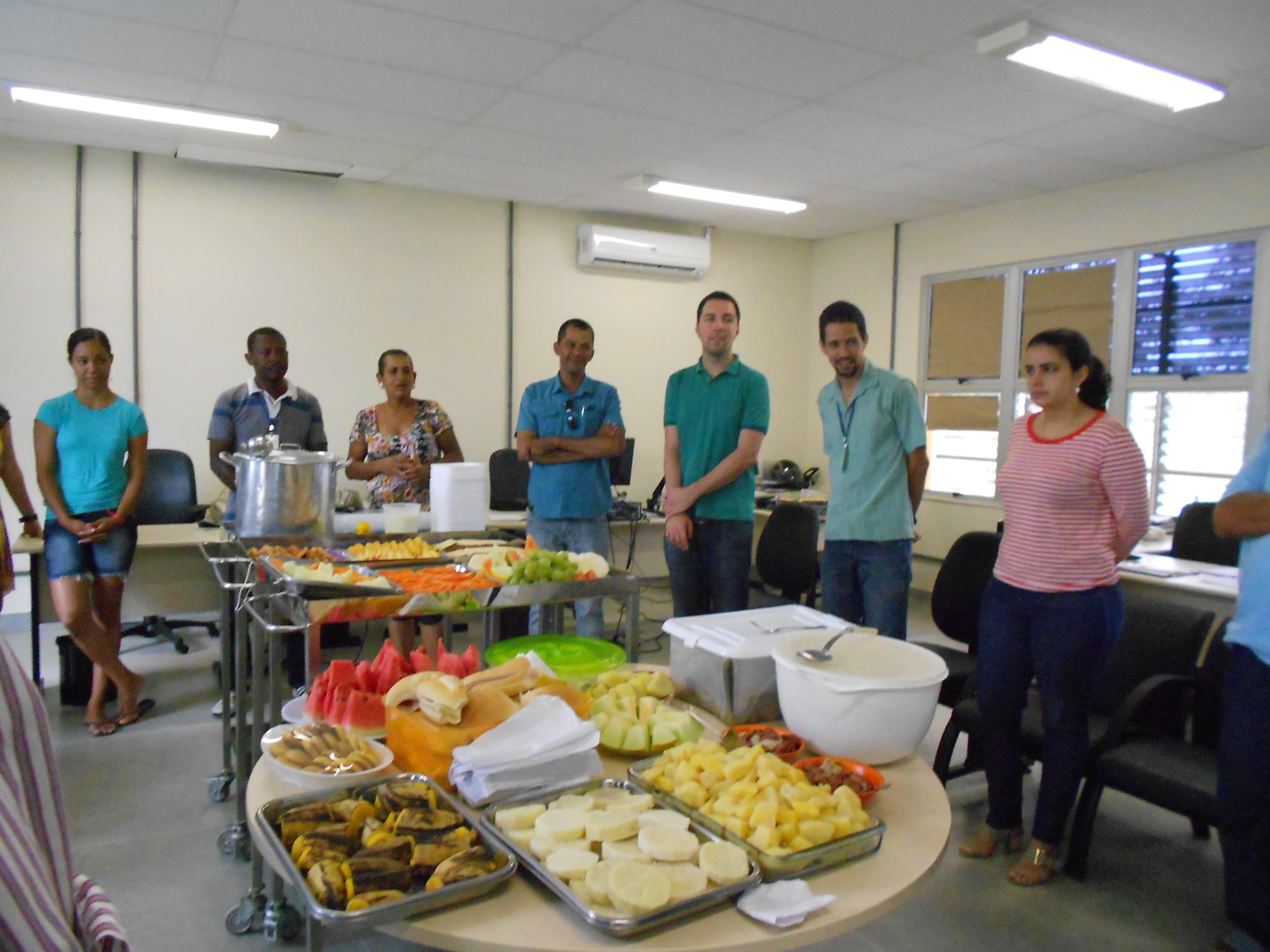 No dia 24 de outubro de 2014 o CCAAB promoveu um café da manhã em comemoração ao dia do "Servidor Público", 28 de outubro. Estiveram presentes docentes e técnico-administrativos. O café da manhã foi composto, além de frutas, sanduiches, café, biscoitos e bolos, etc. O Colega e Servidor Alberico Raimundo, ofereceu um excelente mingau de fruta-pão e uma deliciosa farofa de inhame com carne do sol. A Direção do CCAAB parabeniza a todos os Servidores Públicos do Centro e da UFRB pelo nosso dia reconhecendo a dedicação ao trabalho que cada um empreende para o fortalecimento e crescimento do CCAAB e da UFRB em sua jornada de trabalha. |