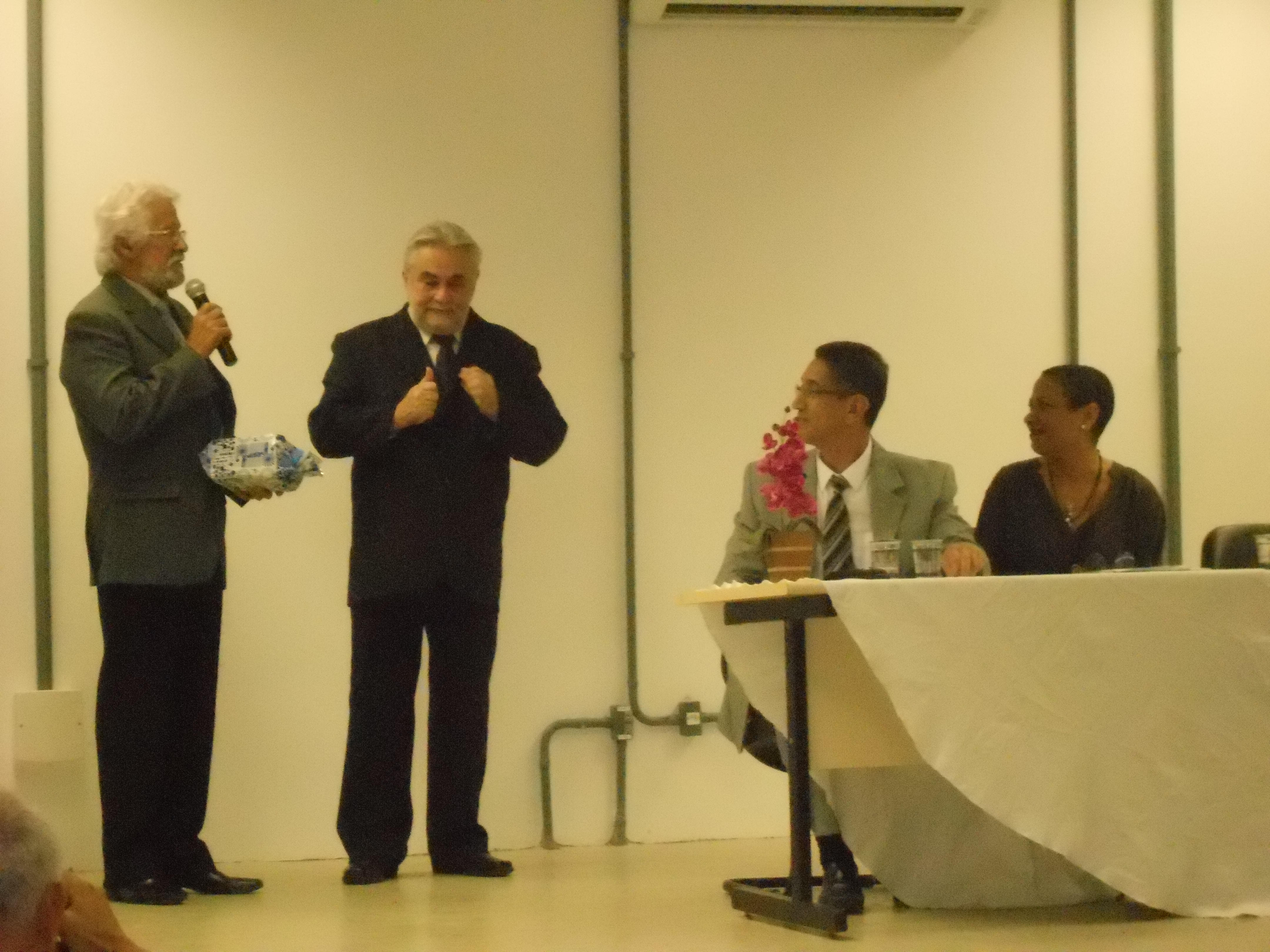 O homenageado falou de sua dívida de gratidão: “estou endividado, minhas dívidas são de amor, gratidão, de reconhecimento do apoio que recebi em minha vida inteira de pessoas que eu nunca tinha visto. Agora esse reconhecimento eu vou carregar até o dia que morrer, o reconhecimento de ver tantos amigos me prestigiando... eu estou emocionado”.