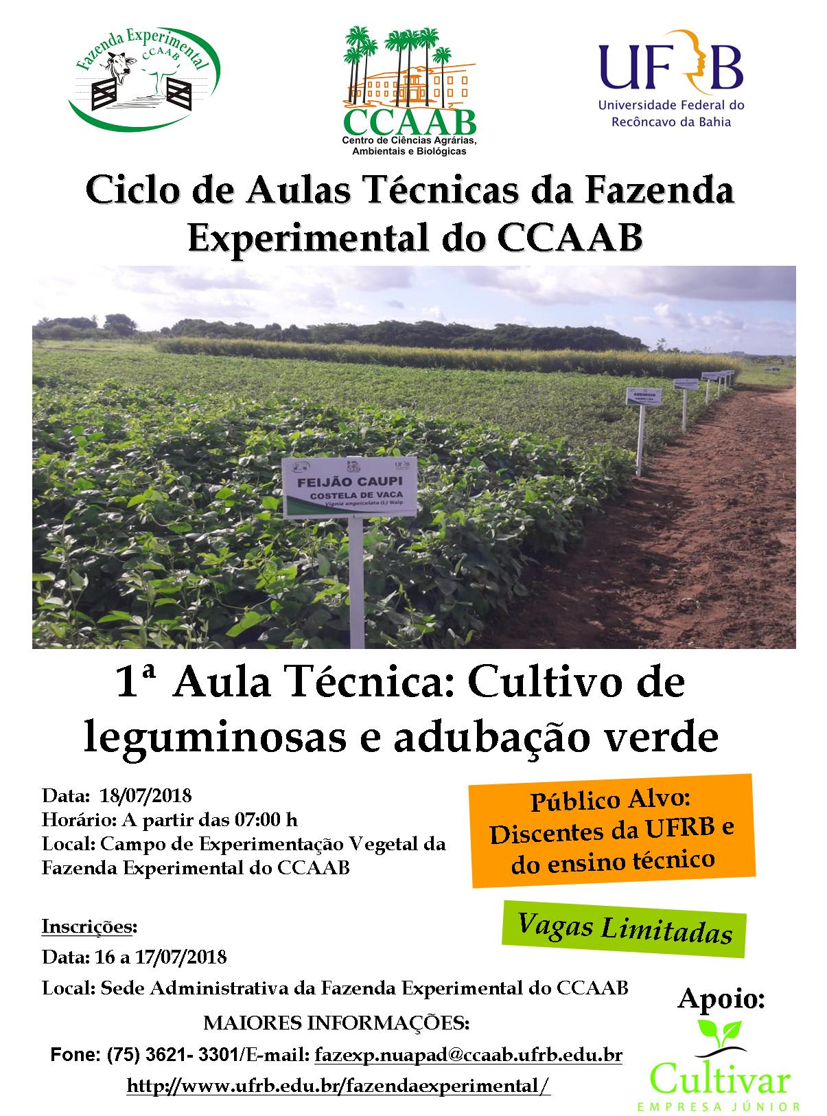 A Fazenda Experimental do CCAAB/UFRB no cumprimento da programação anual de eventos divulga o "Ciclo de Aulas Técnicas da Fazenda Experimental do CCAAB".