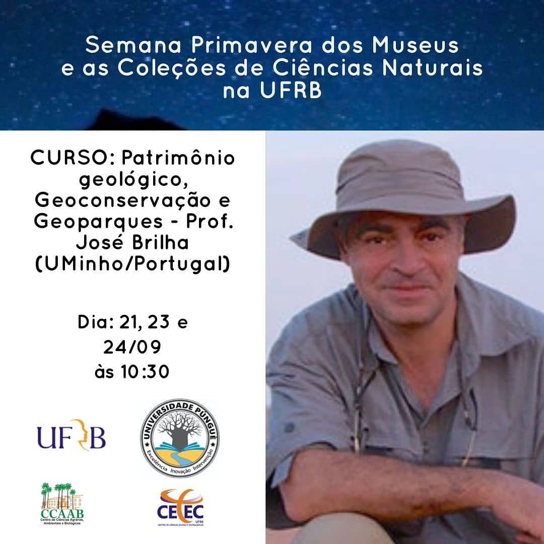 10:30 Minicurso: Patrimônio geológico, Geoconservação e Geoparques - Prof. José Brilha (UMinho/Portugal) (https://videoconf-colibri.us/j/87090820752)