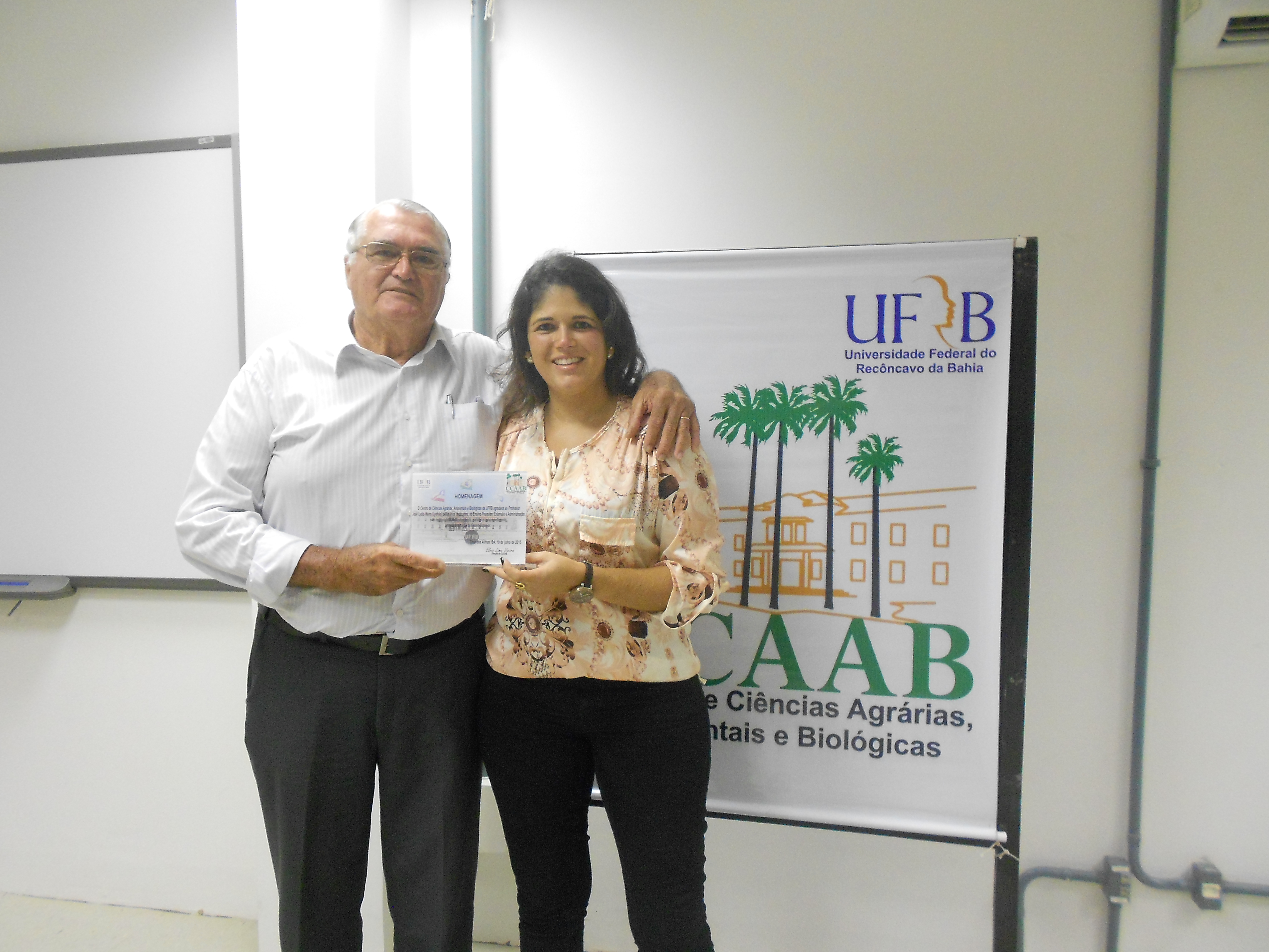 A Direção do CCAAB, durante a Colação de Grau, sem cerimonial, dos Cursos de Graduação do CCAAB do semestre 2014.2, no dia 24 de julho de 2015, homenageou o Prof. José Lydio Meira pelos anos de dedicação a esta Instituição de Ensino Superior.