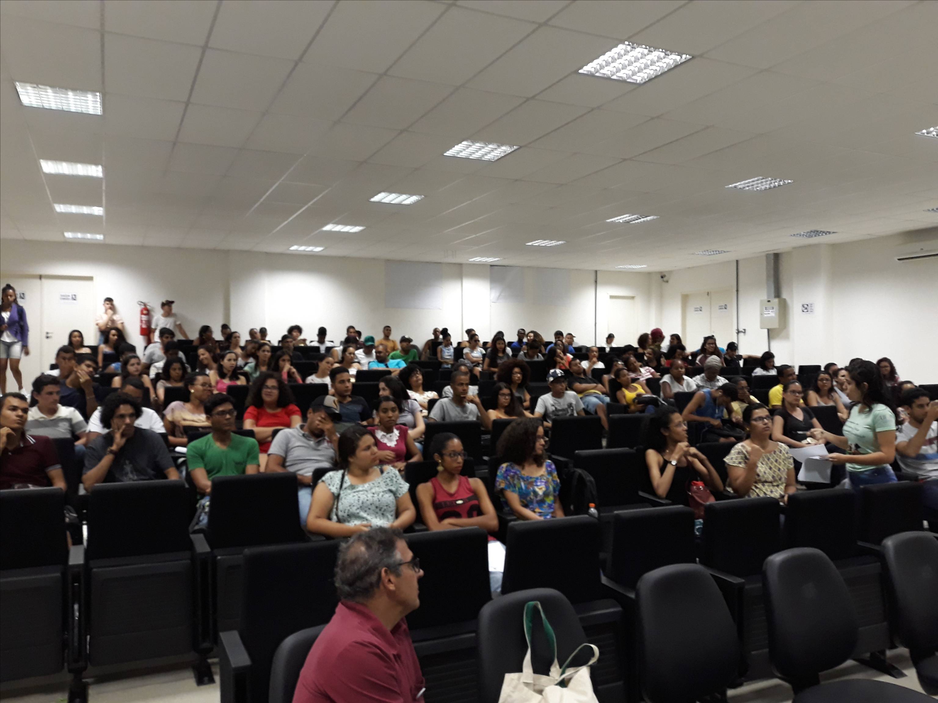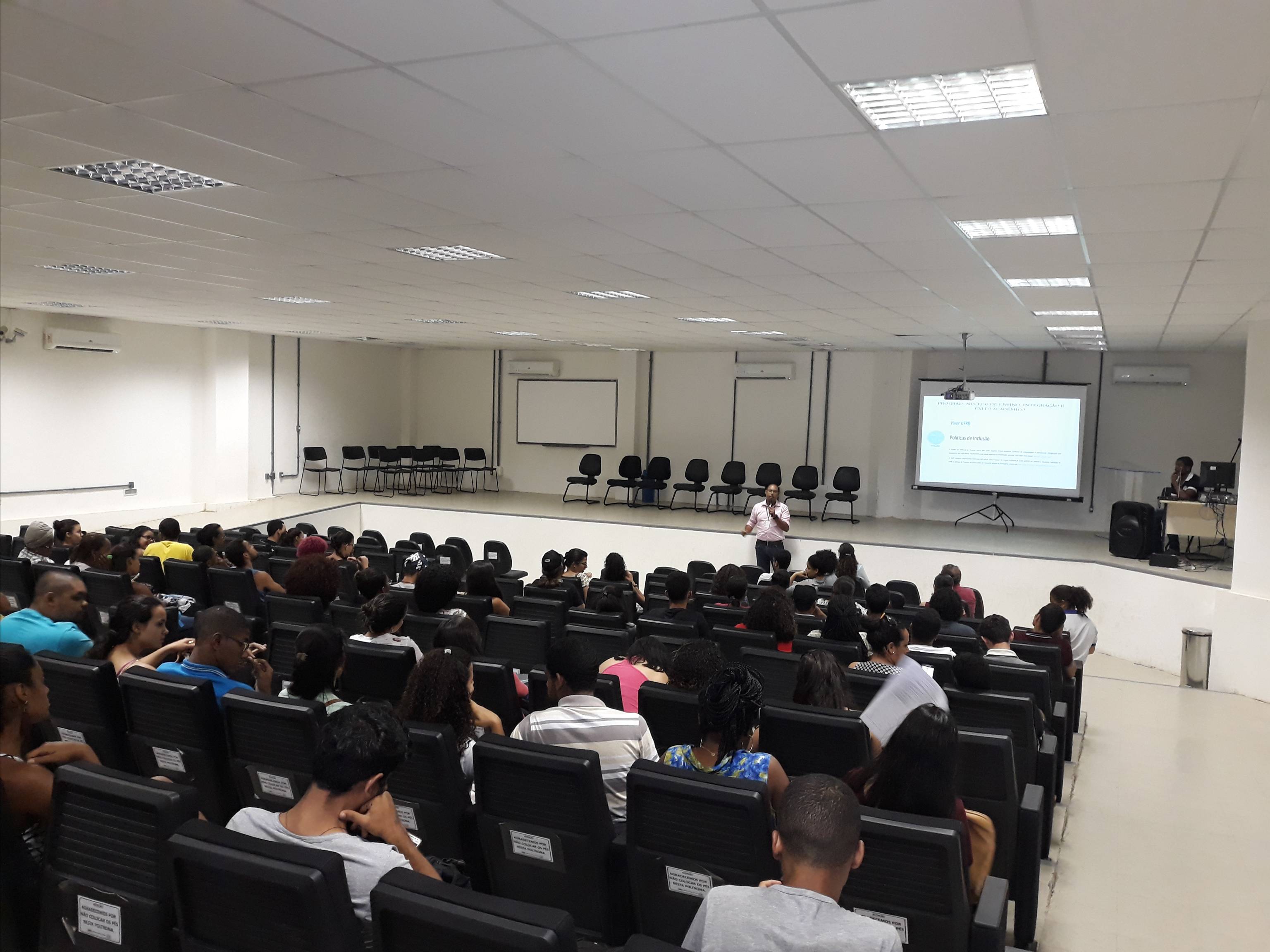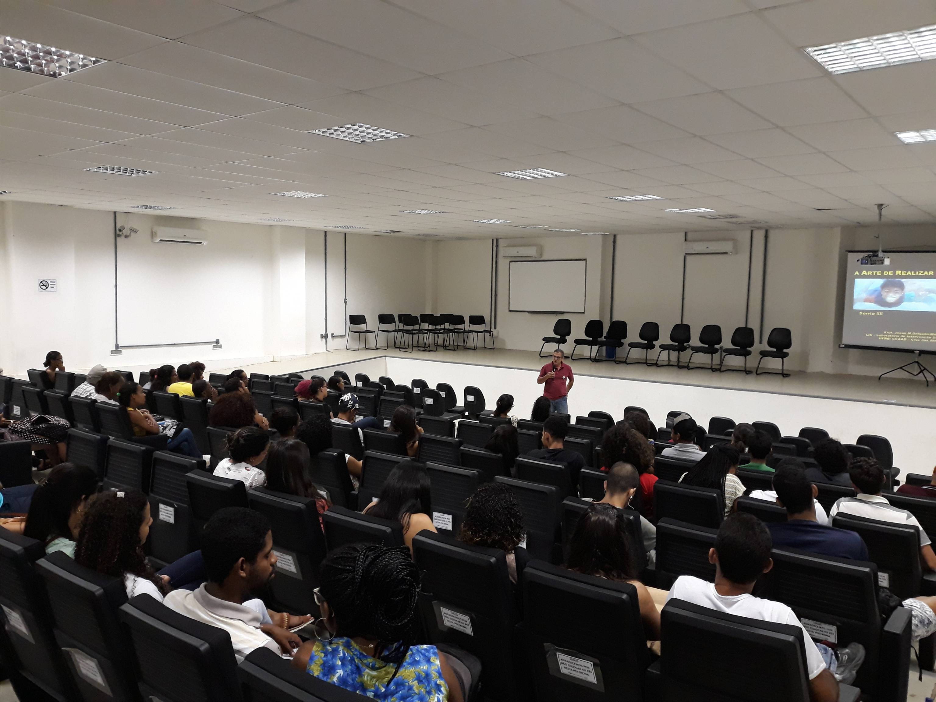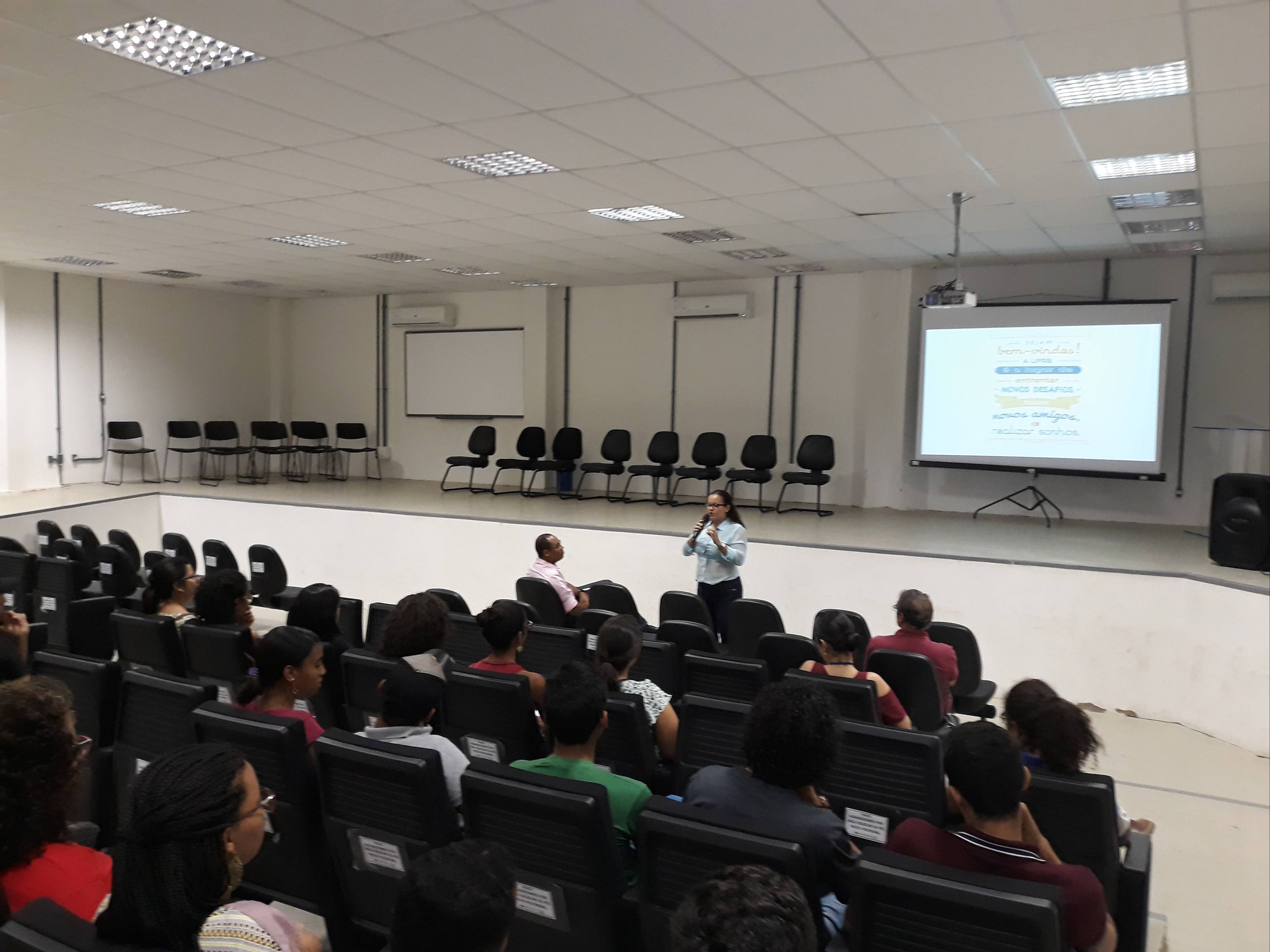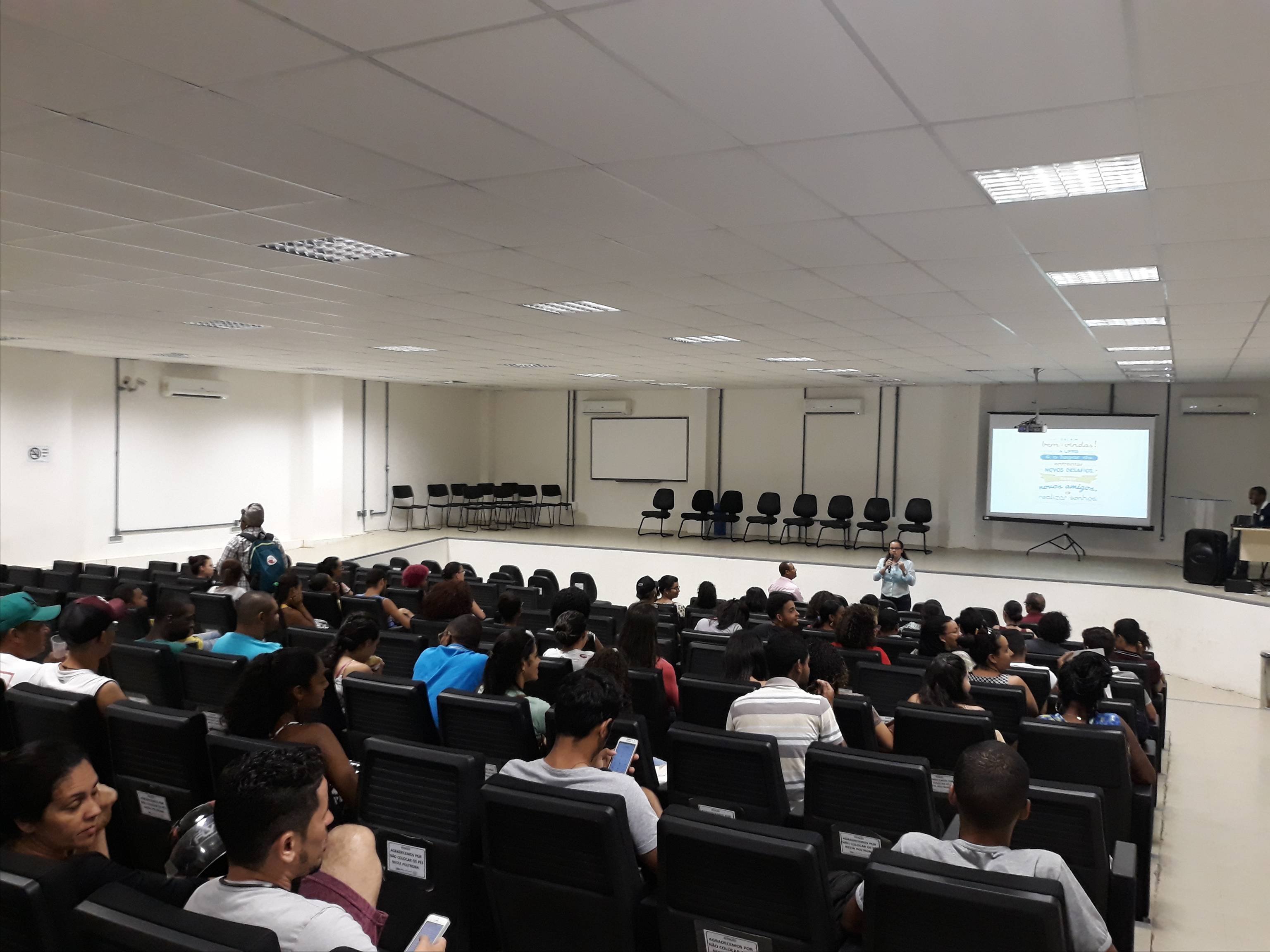 A recepção consistiu em dar boas-vindas aos ingressantes dos cursos do CCAAB e apresentar a universidade e os grupos estudantis que atuam diretamente aos estudantes durante todo o percurso acadêmico.