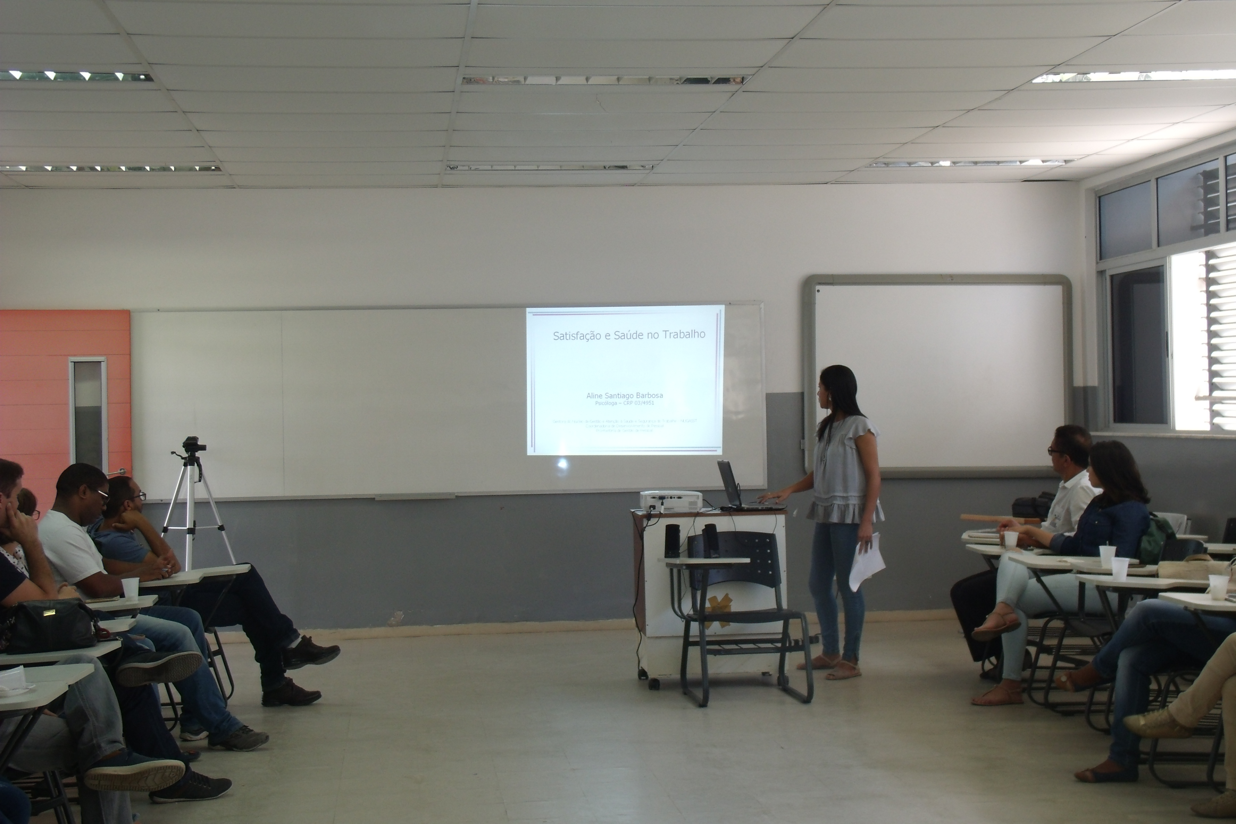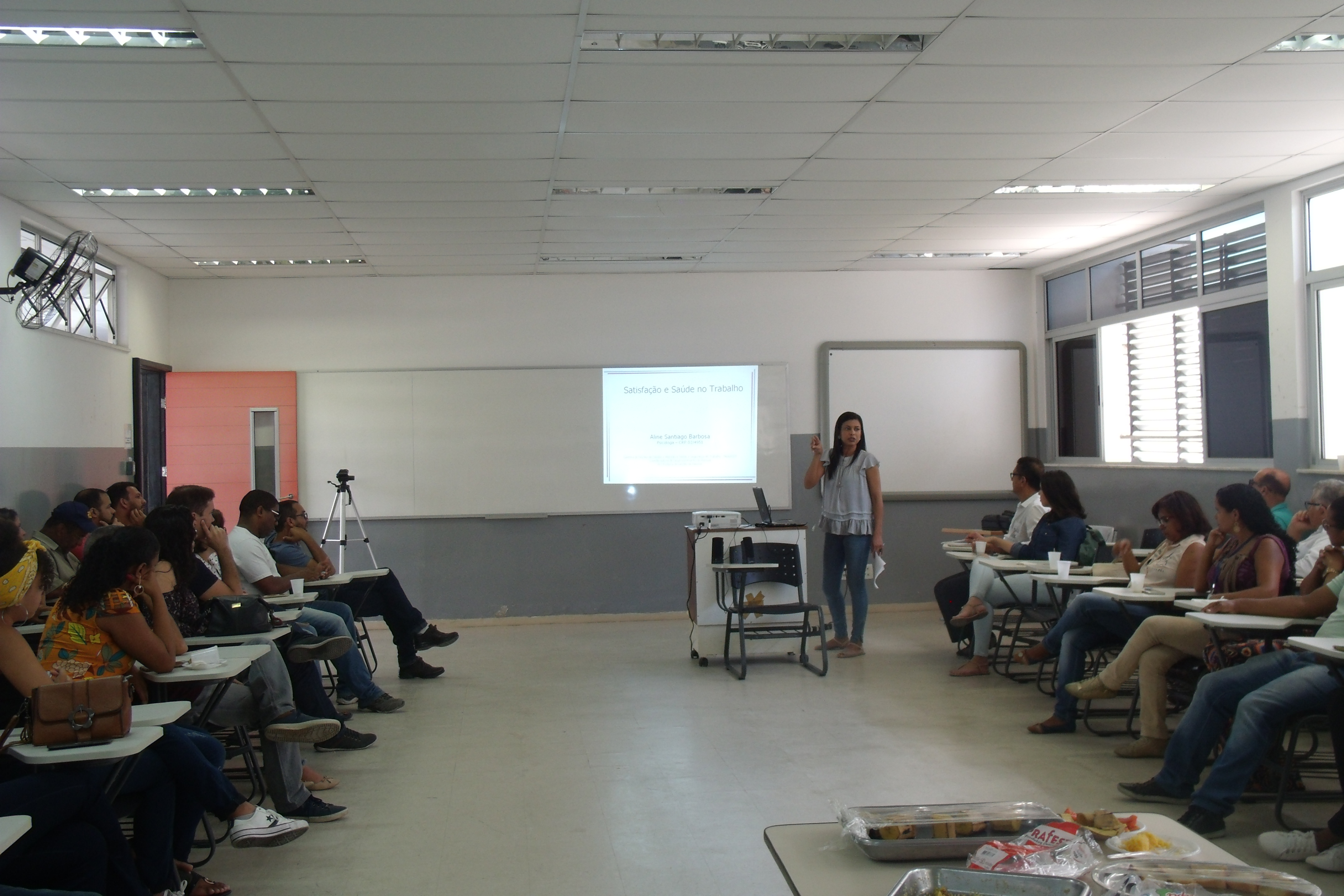 O evento contou com uma palestra intitulada "Satisfação e saúde no trabalho" ministrada por Aline Santiago Barbosa (Chefe do Núcleo de Gestão e Atenção à Saúde e Segurança do Trabalho - NUGASST/CDP/PROGEP/UFRB). Estiveram presentes técnicos docentes e terceirizados.