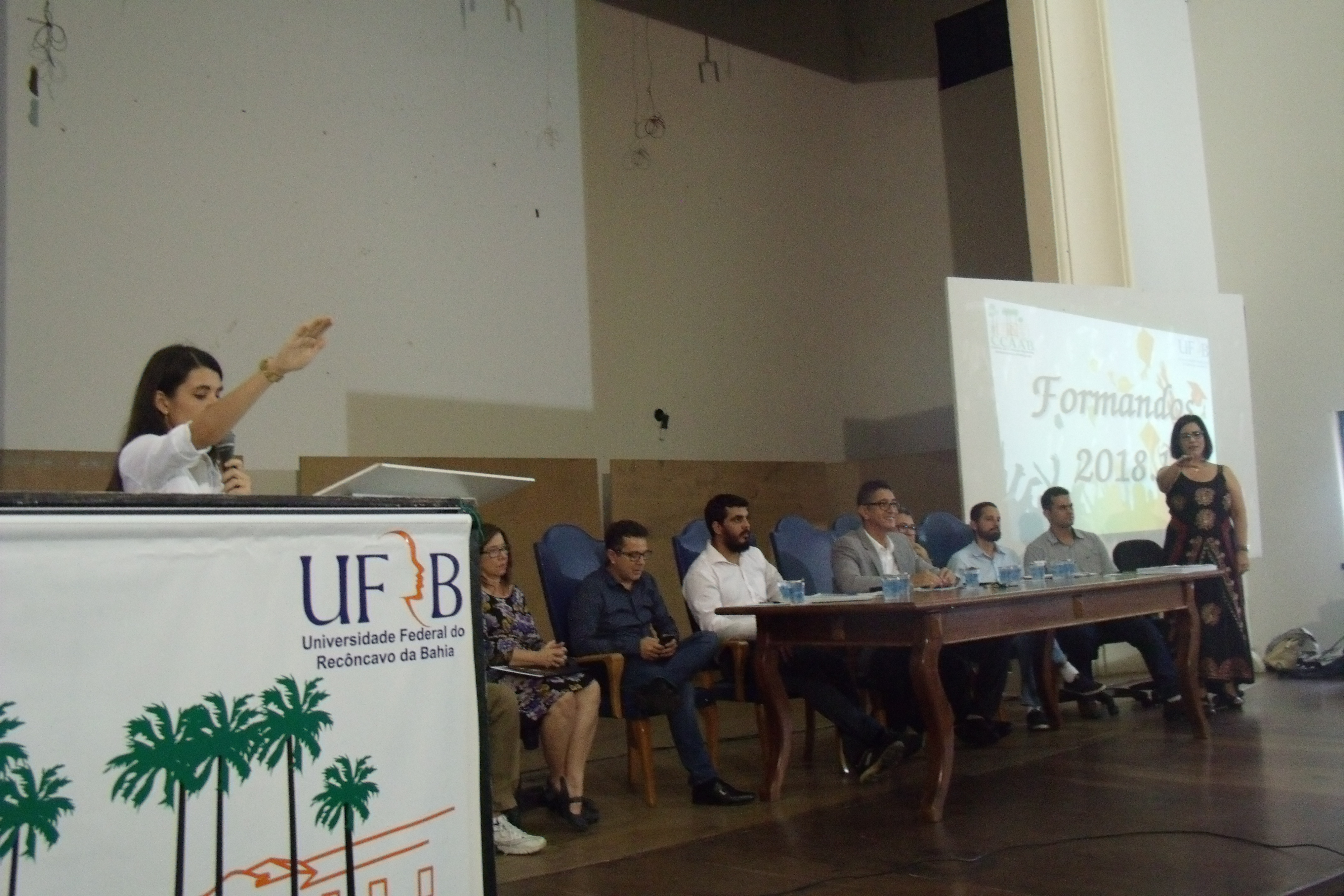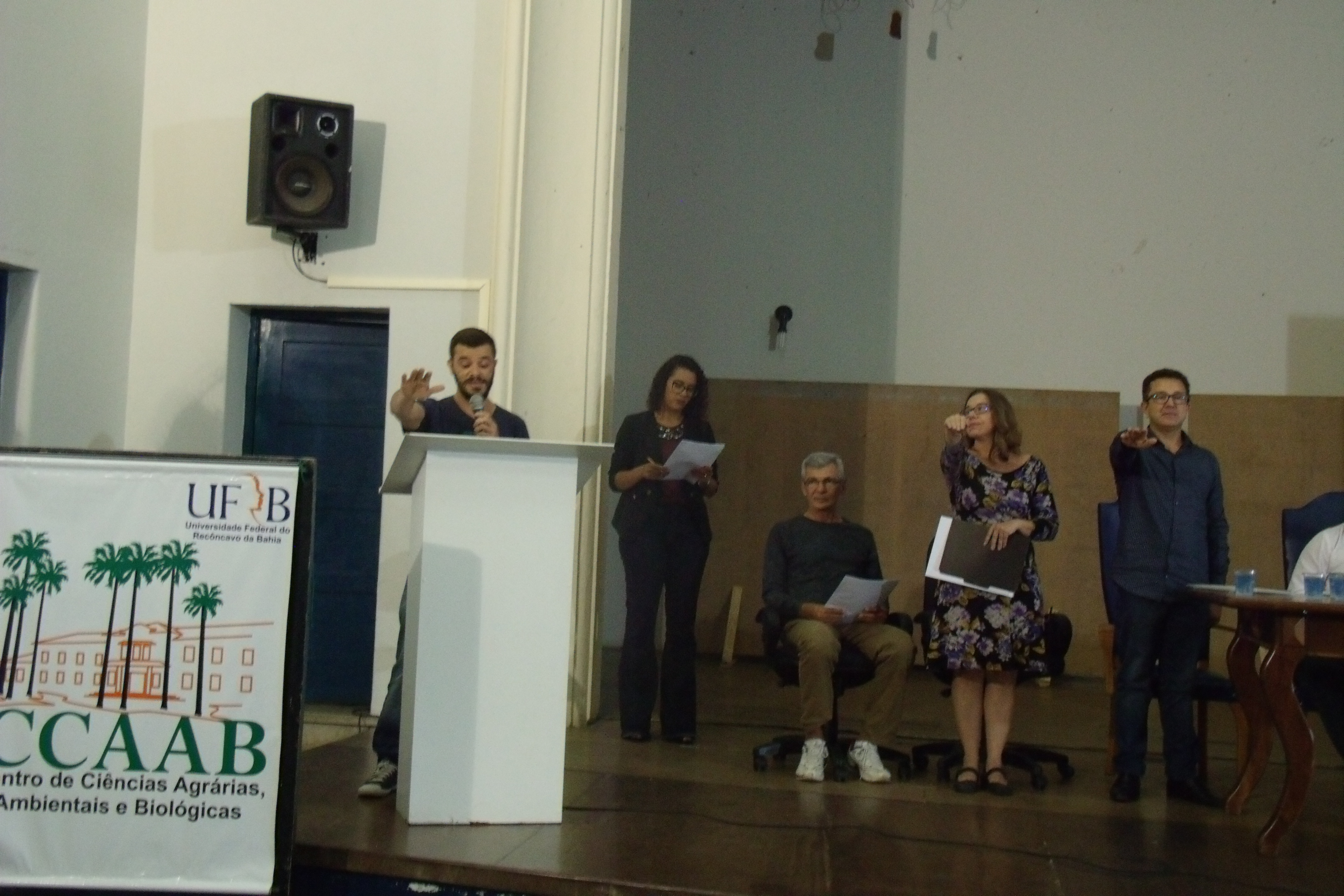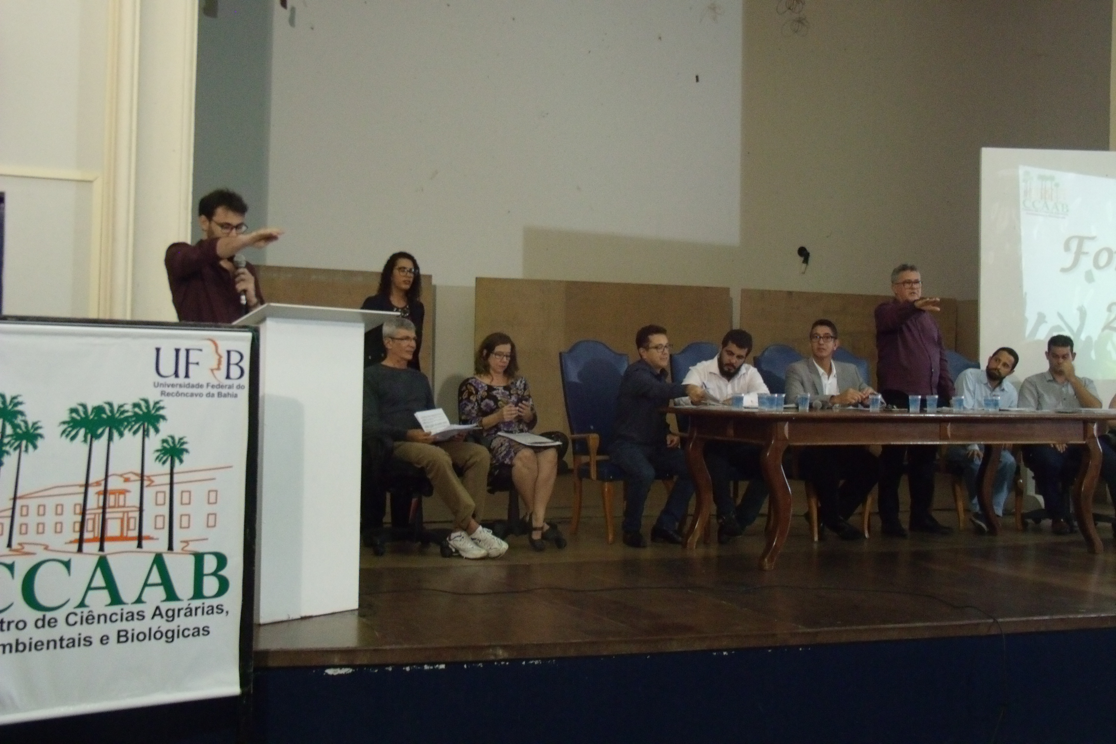 A mesa foi composta pelo diretor do CCAAB e coordenadores dos cursos de graduação: Prof. Yuri Caires Ramos (Coordenador do Curso de Agronomia); Prof. Moacyr Serafim Júnior (Coordenador do Curso de Engenharia de Pesca); Prof.ª Leila de Lourdes Longo (Coordenadora do Curso de Bacharelado em Biologia); Prof. Gabriel Ribeiro (Coordenador do Curso de Licenciatura em Biologia); Prof. Matheus Pires Quintela (Coordenador do Curso de Tecnologia em Agroecologia); Prof. José da Conceição Santana (Coordenador do Curso de Tecnologia em Gestão de Cooperativas); Prof.ª Letícia Santos Rezende (Coordenadora do Curso de Medicina Veterinária) e Prof. Deoclides Ricardo de Souza (Coordenador do Curso de Engenharia Florestal).