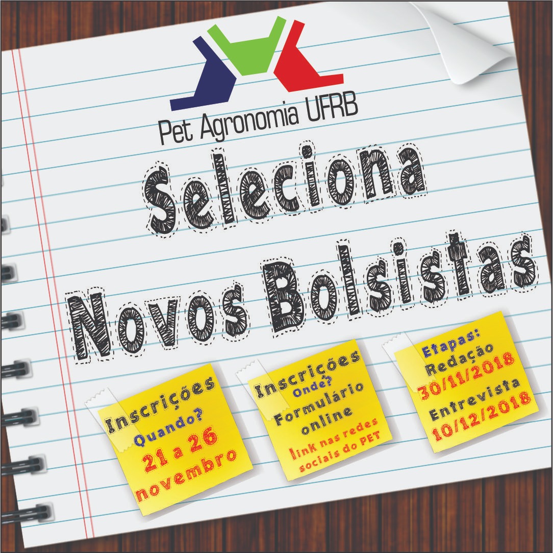 Mais informações em: http://www2.ufrb.edu.br/petagronomia/10-noticias/195-edital-prograd-selecao-de-novos-bolsistas