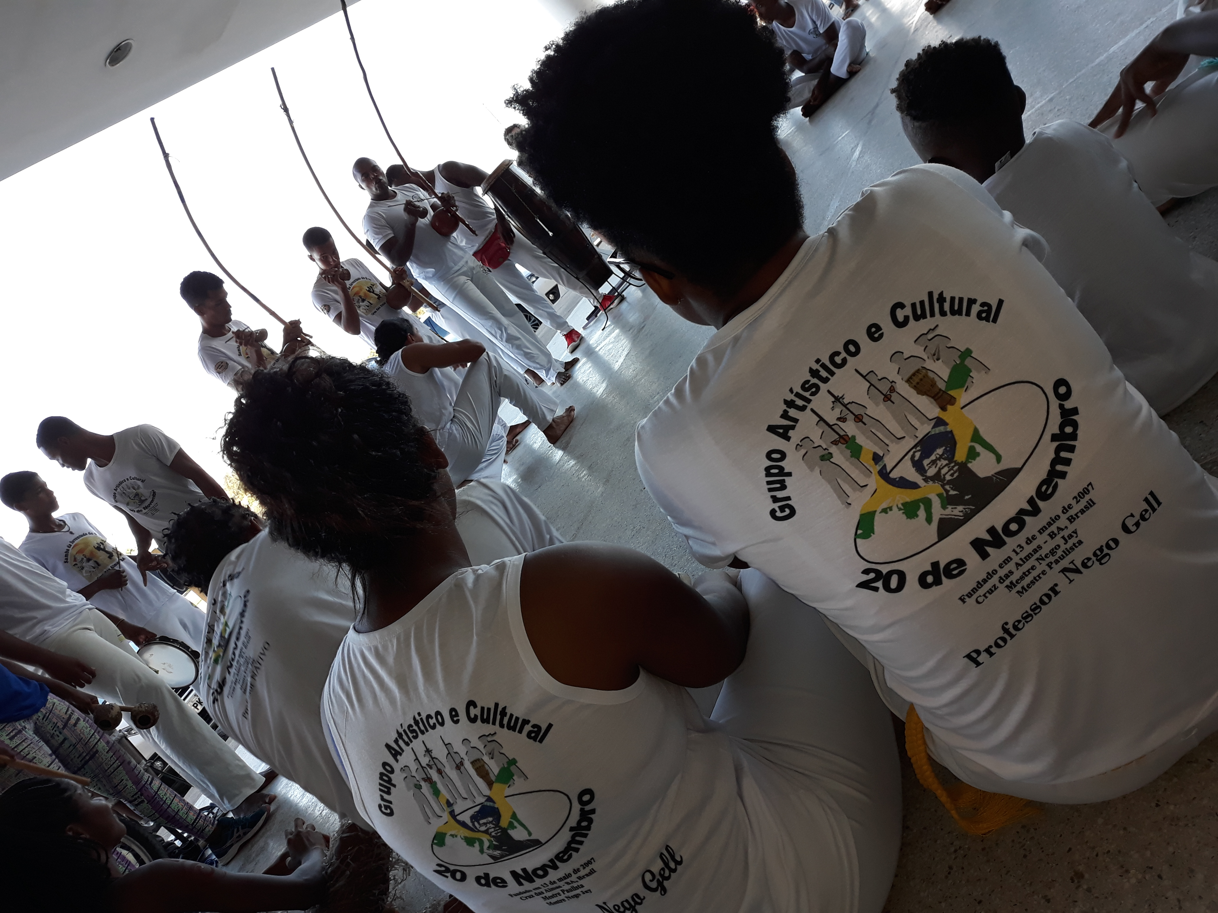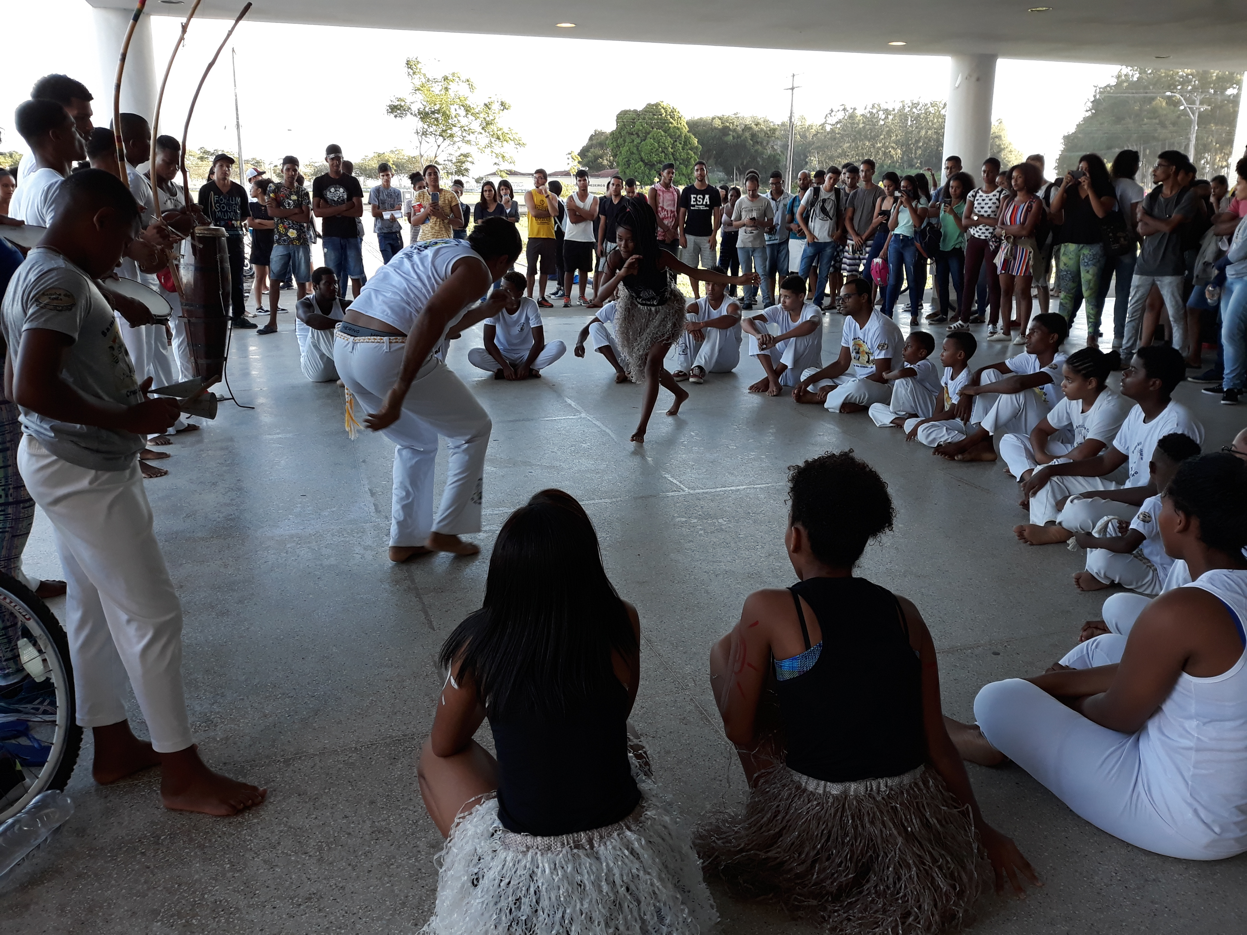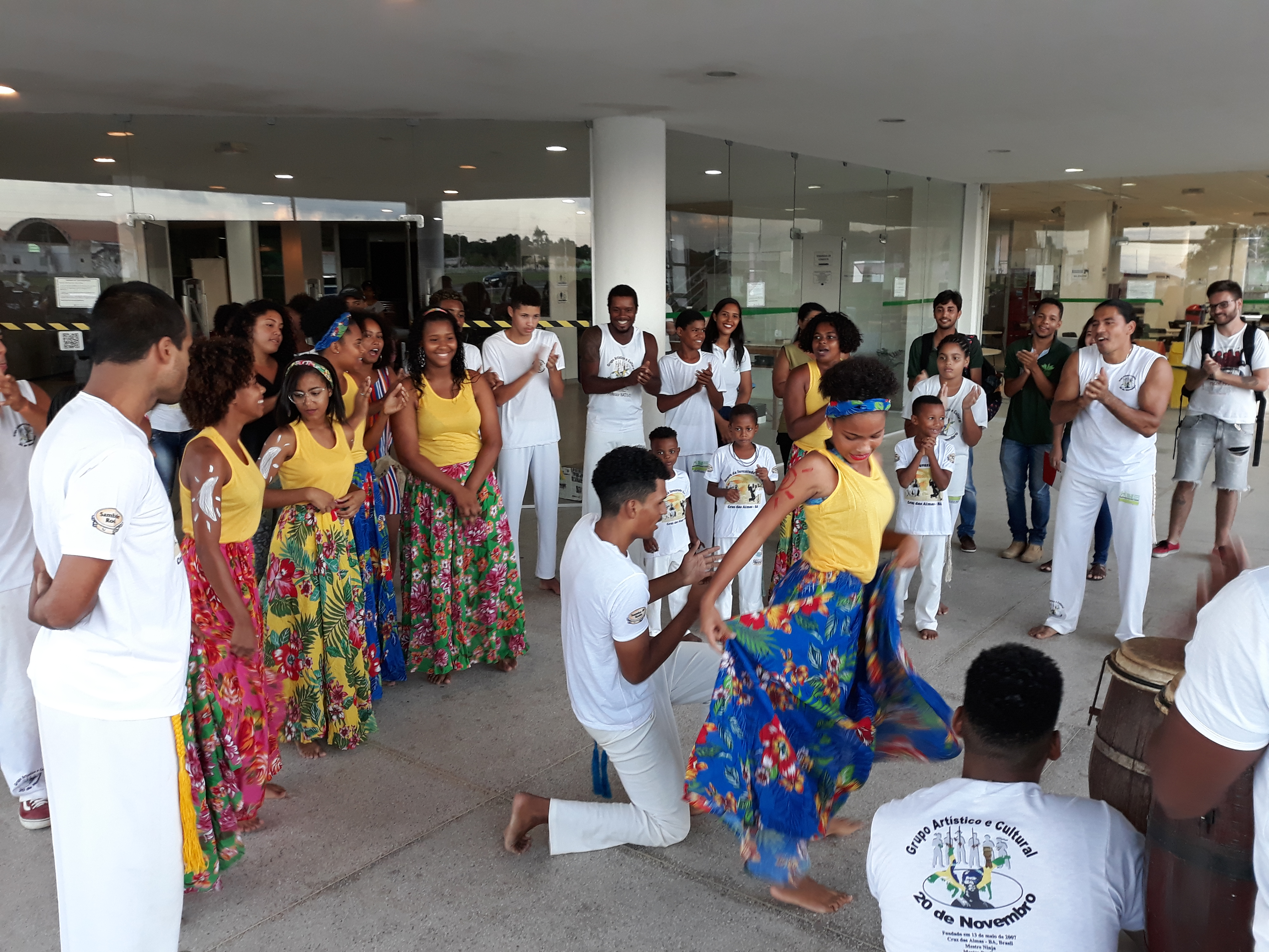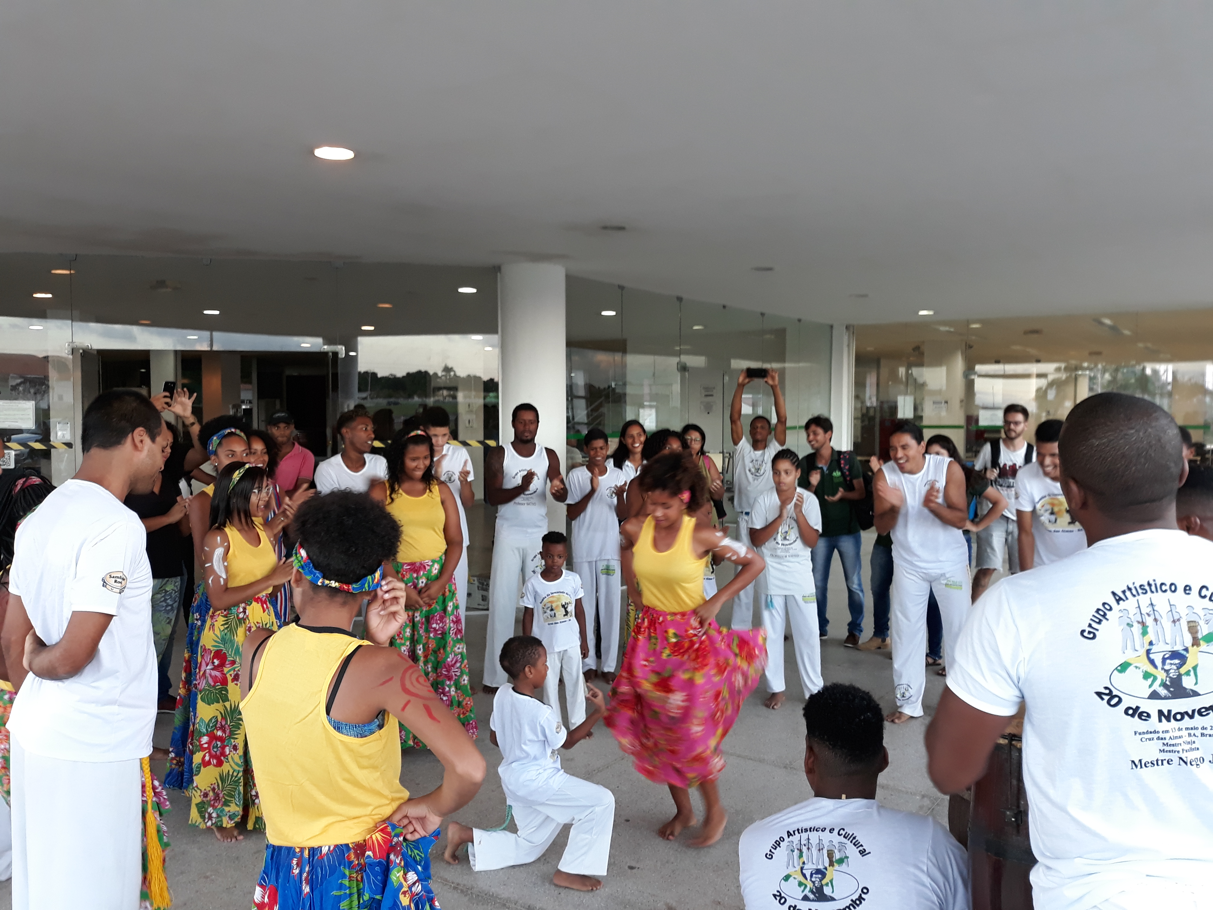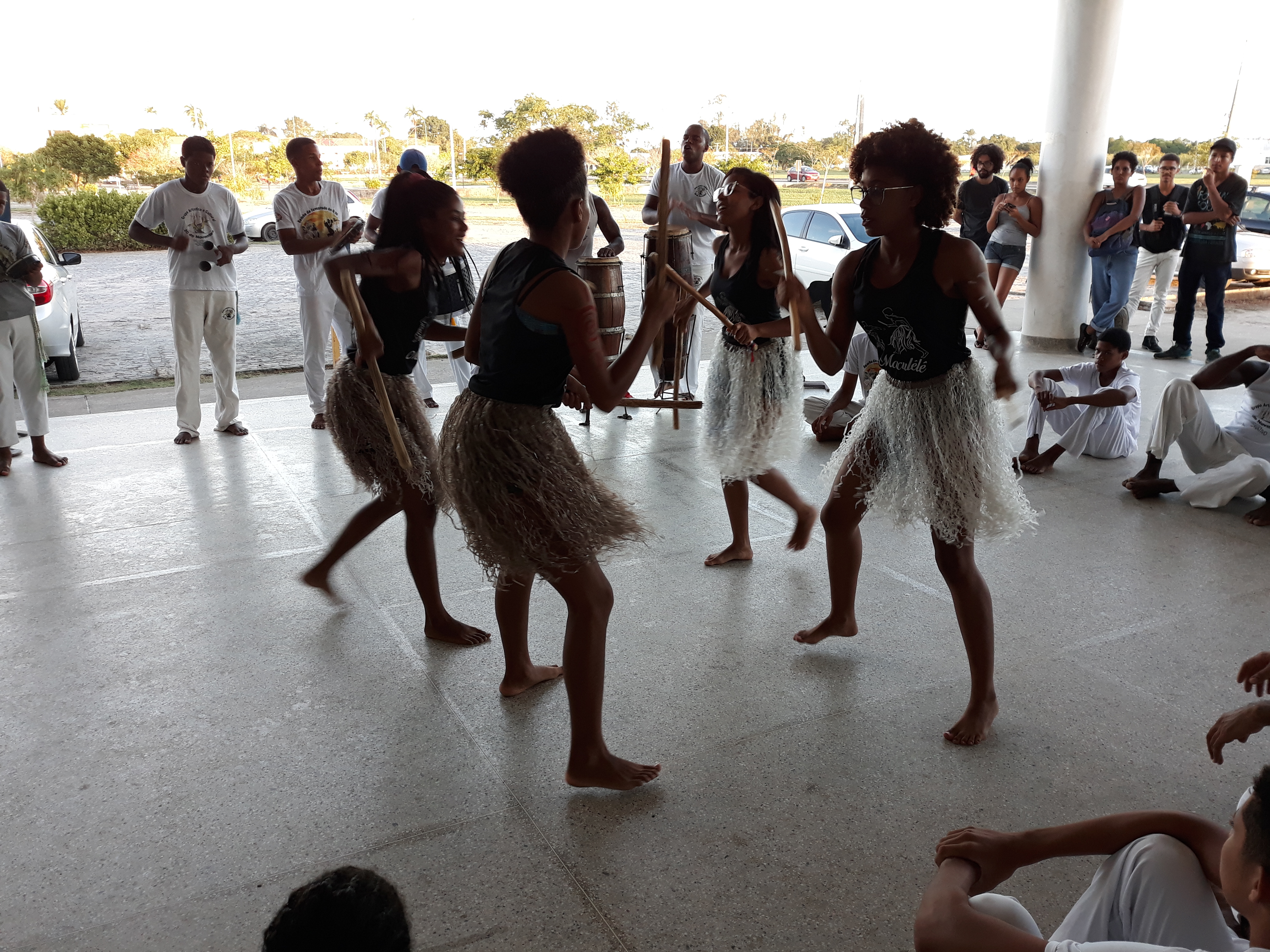 Durante e após o momento de integração, os estudantes foram convidados para um delicioso coffee break fornecido pela Pro-Reitoria de Assuntos Estudantis (PROPAAE). No encerramento do evento houve uma belíssima apresentação do Grupo Artístico e Cultural 20 de Novembro, coordenado por Jaylson Santos – Mestre Nego Jay. O grupo apresentou a dança folclórica Maculelê e os estudantes presentes puderam interagir nas apresentações da Roda de Capoeira e do Samba de Roda.