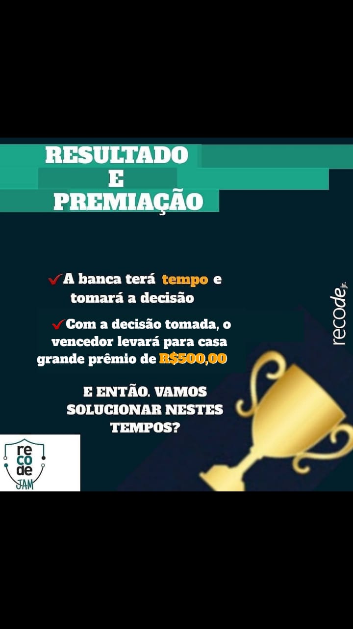 Com apoio especial da @2minformatica, o evento Recode Jam será realizado entre os dias 28/06 e 05/07, e contará com a presença de docentes e uma pós júnior da Recode Jr, que avaliarão os projetos e escolherão o vencedor, que levará para casa o grande prêmio final de R$500,00.