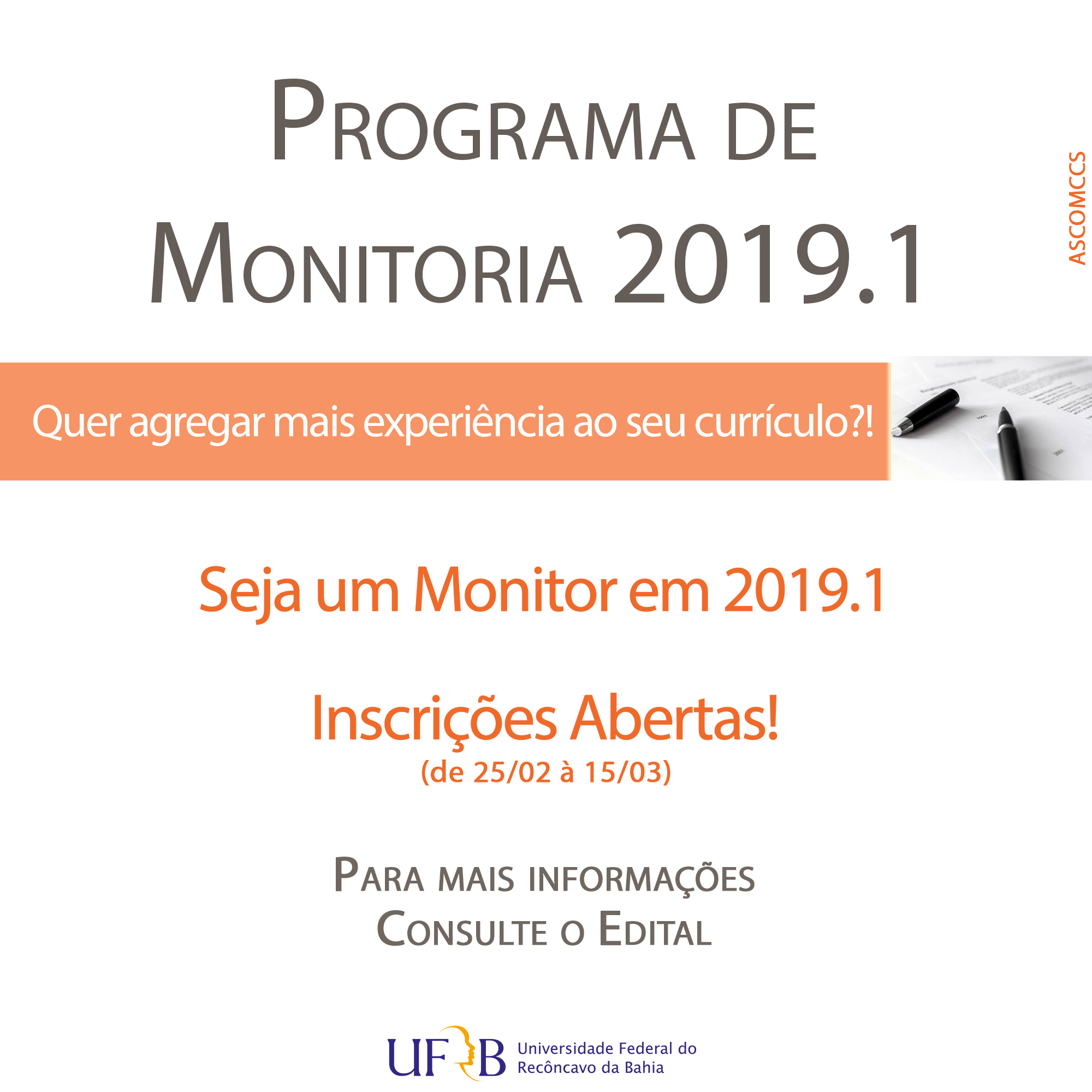Programa de Monitoria 2019.1 - Inscrições Abertas!