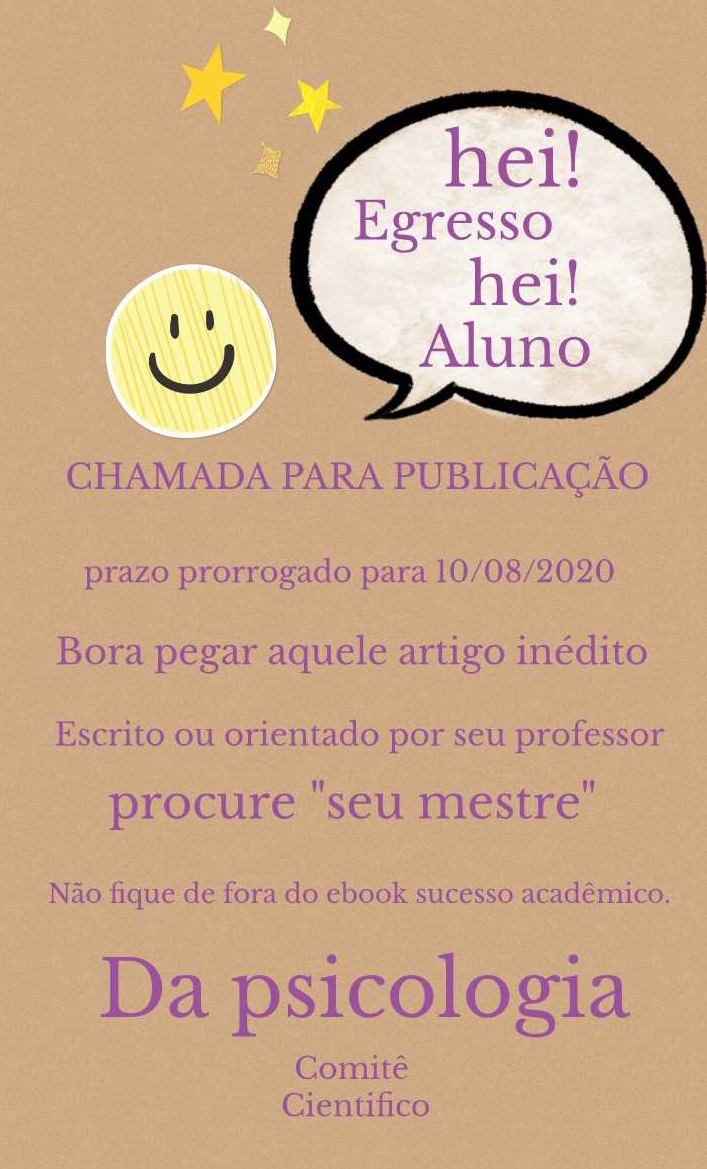 O prazo para a submissão de textos para compor o livro Sucesso Acadêmico da Psicologia foi prorrogado para o dia 10/08/20 (segunda-feira) . Os textos devem ser enviados para Este endereço de email está sendo protegido de spambots. Você precisa do JavaScript ativado para vê-lo.