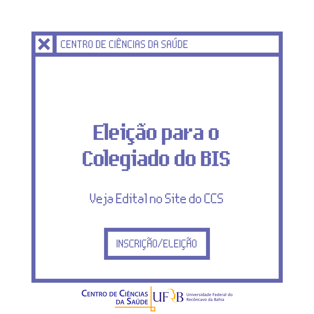 O Colegiado do Curso de Bacharelado Interdisciplinar em Saúde (BIS) da Universidade Federal do Recôncavo da Bahia (UFRB), torna público o Edital de Eleição para preenchimento de 05 vagas para membros efetivos do Colegiado.