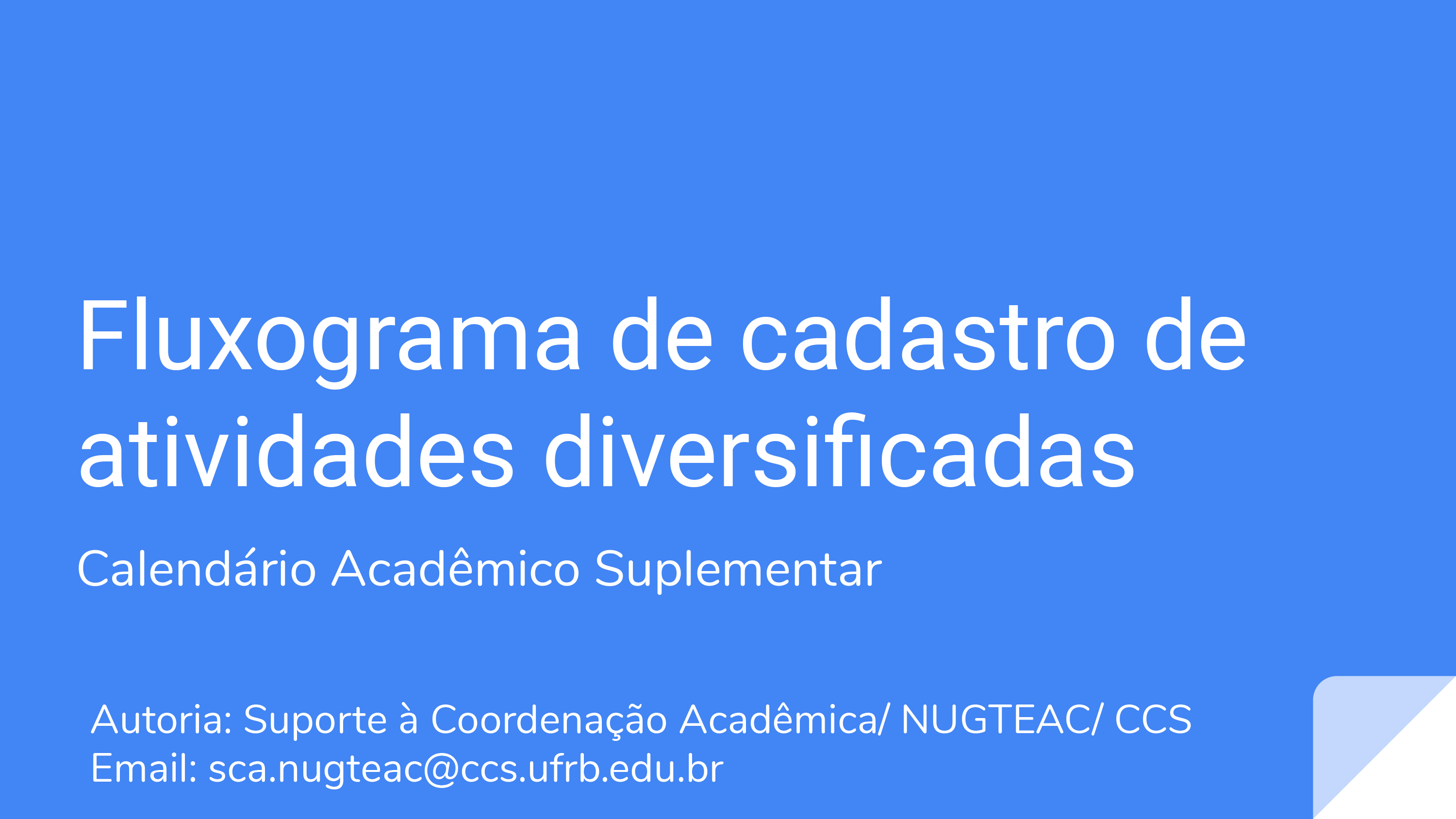 De acordo com a Resolução CONAC Nº19/2020 que dispõe sobre a regulamentação de Calendário Acadêmico Suplementar da UFRB para oferta excepcional e experimental de componentes curriculares e de atividades de ensino e de aprendizagem não presenciais, para a graduação, no período de 14 de setembro a 19 de dezembro de 2020, o Núcleo de Gestão de Atividades de Ensino de Graduação em parceria com equipe de Suporte a Gestão Acadêmica (SGA/NUGTEAC) do Centro de Ciências da Saúde divulgam Orientações e Procedimentos para Planejamento Acadêmico Suplementar do CCS/UFRB.