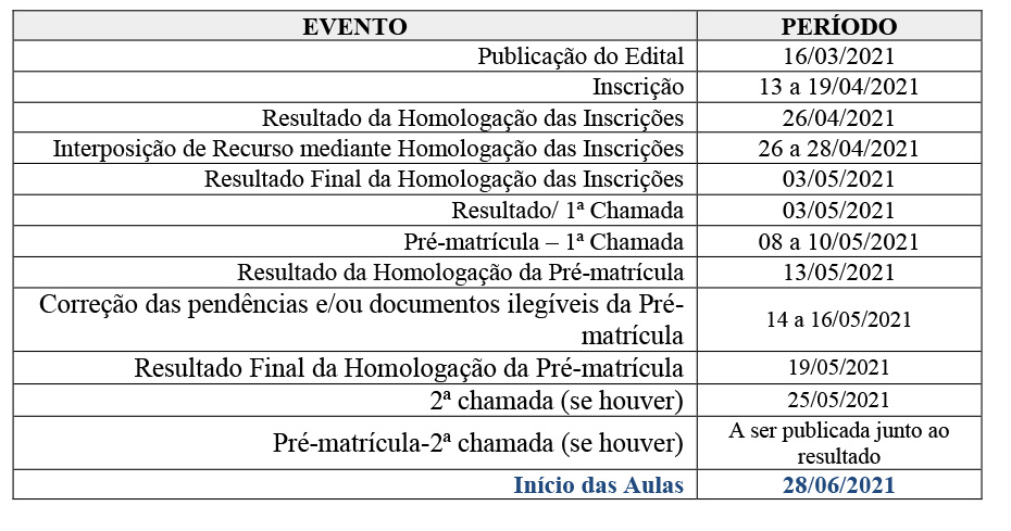 Confira o cronograma
