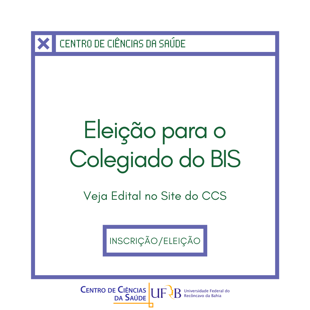 - O resultado do processo eleitoral será divulgado nas redes sociais do CCS e por e-mail pelo Colegiado do Curso do BIS até às 12h do dia 23de abril de 2021.
