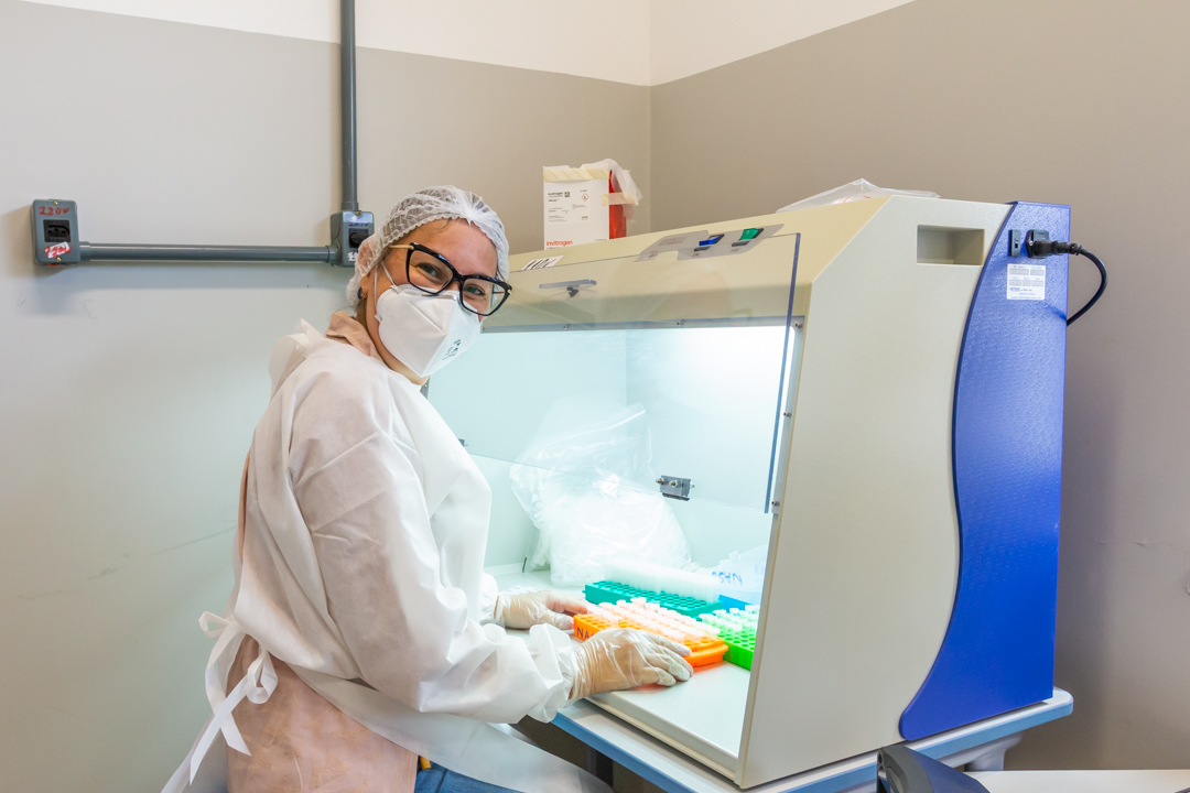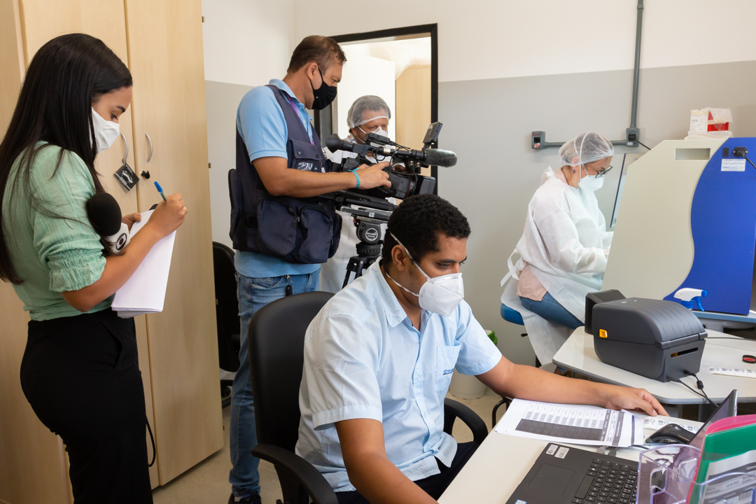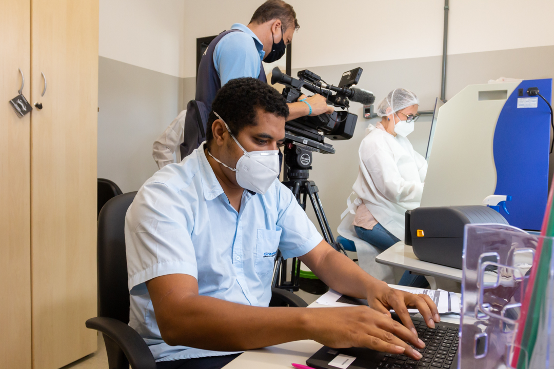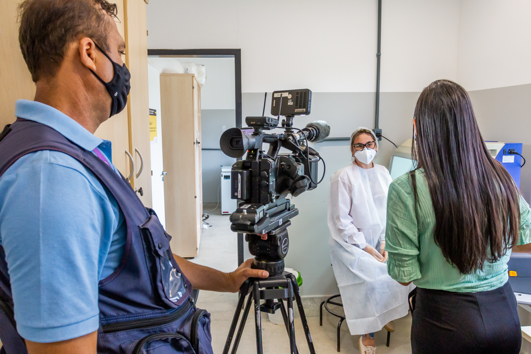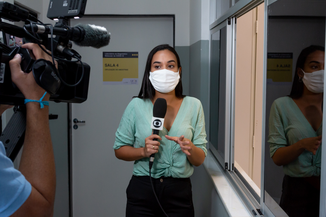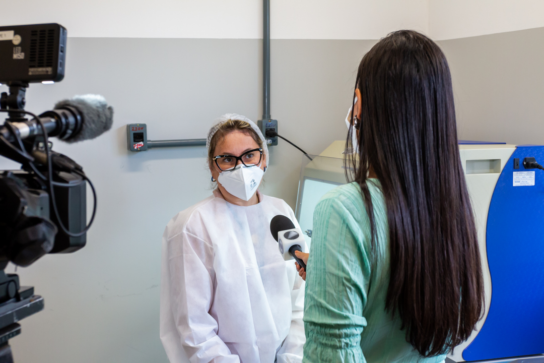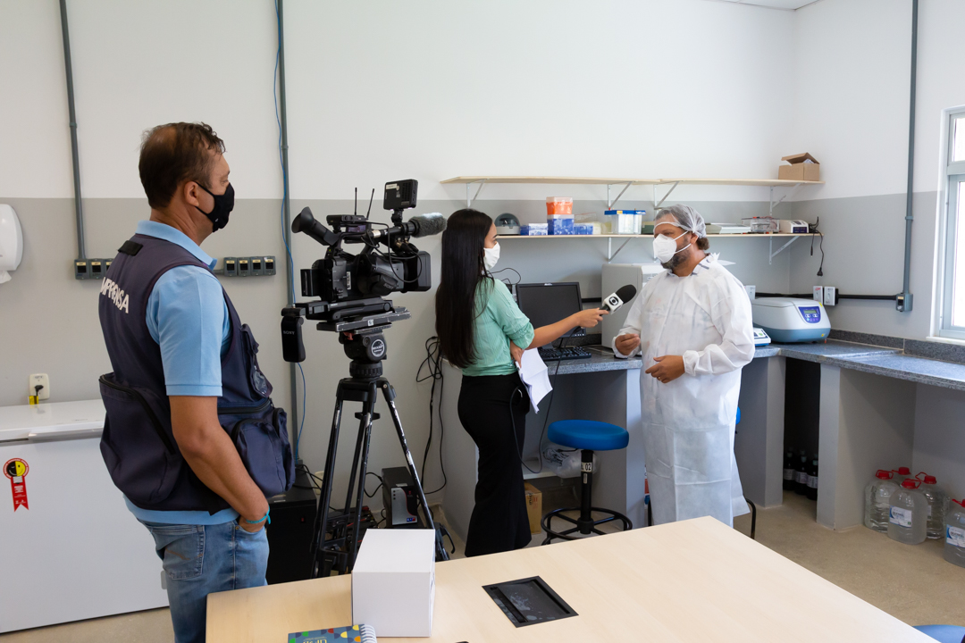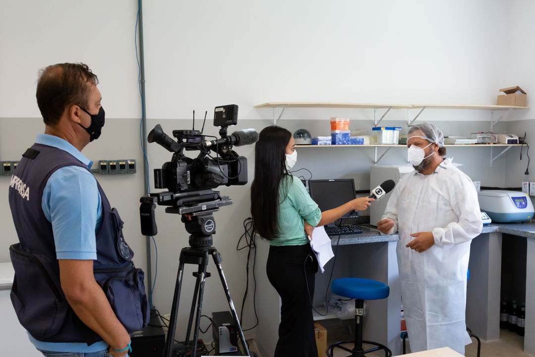 Na manhã desta quarta-feira, 14, o Centro de Ciências da Saúde – CCS/UFRB, recebeu a visita da TV Subaé (afiliada Rede Globo) para uma reportagem sobre a pandemia do SARS-CoV-2. O coordenador do Laboratório de Diagnóstico Molecular da COVID-19 – LabCov UFRB, professor Fernando Vicentini, acompanhou a repórter Bruna Evangelho na visita guiada, mostrando os laboratórios e explicando o processo desde a chegada das amostras até o lançamento dos resultados no sistema.