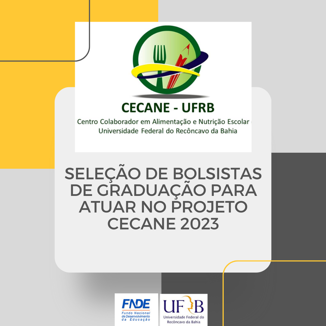 A coordenação do Centro Colaborador em Alimentação e Nutrição Escolar (CECANE) da UFRB e a Fundação de Apoio à Pesquisa e à Extensão (FAPEX) tornam público edital para a seleção de estudantes de graduação bolsistas de extensão.