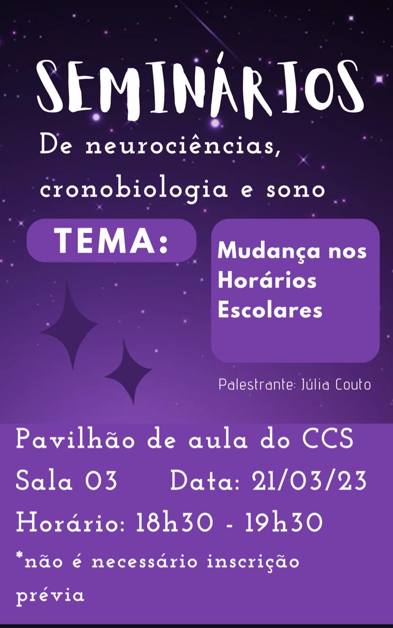 Seminários de Neurociências, Cronobiologia e Sono - Tema "Mudança nos horários escolares"