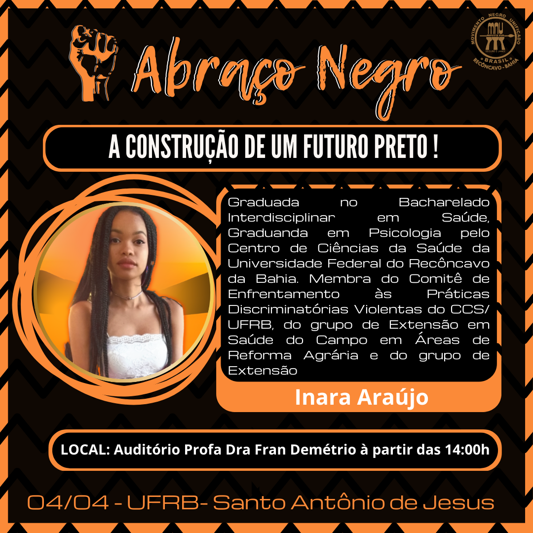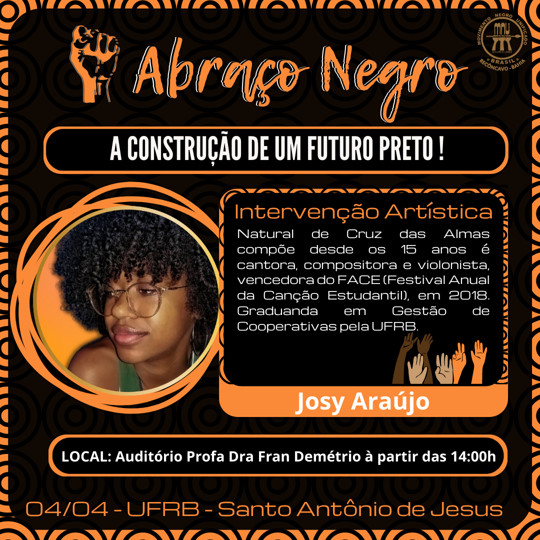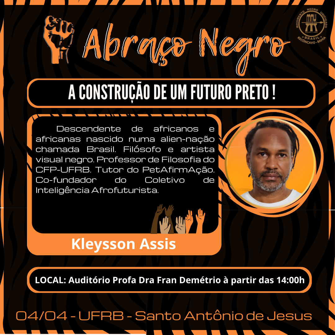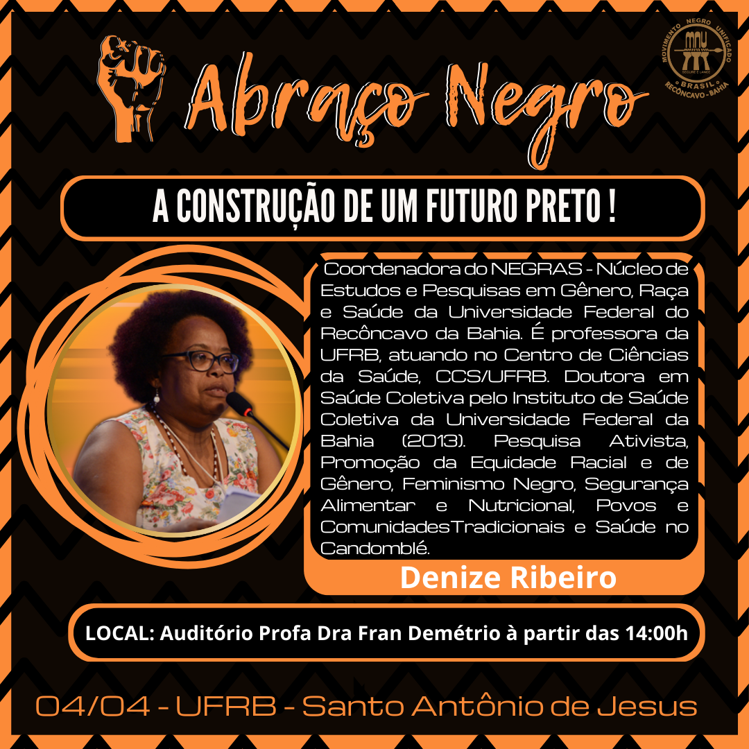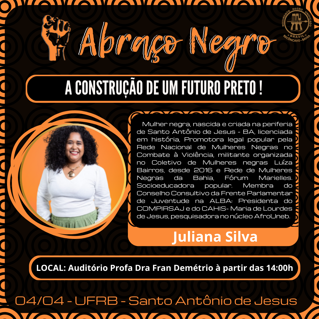 3º dia do Abraço Negro - dia 04/04, a partir das 14h em Santo Antônio de Jesus, UFRB, auditório Profa. Dra. Fran Demétrio
