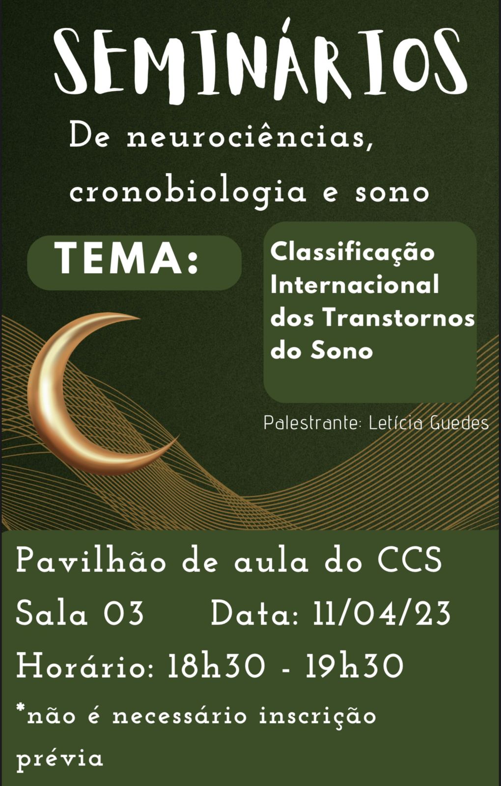 Seminários de Neurociências, Cronobiologia e Sono - Tema "Classificação Internacional dos Transtornos do Sono"