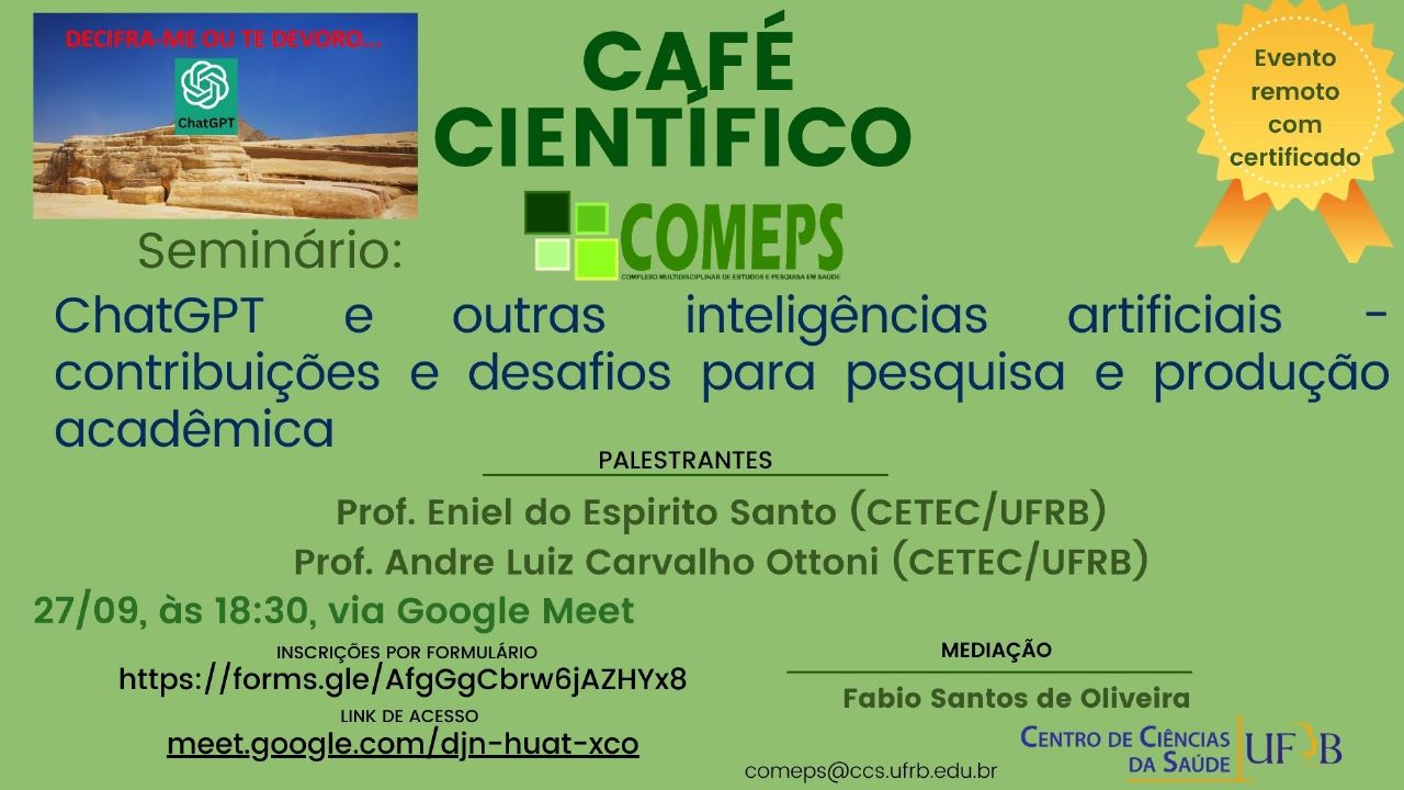 Café Científico COMEPS: ChatGPT e outras inteligências artificiais - contribuições e desafios para pesquisa e produção acadêmica