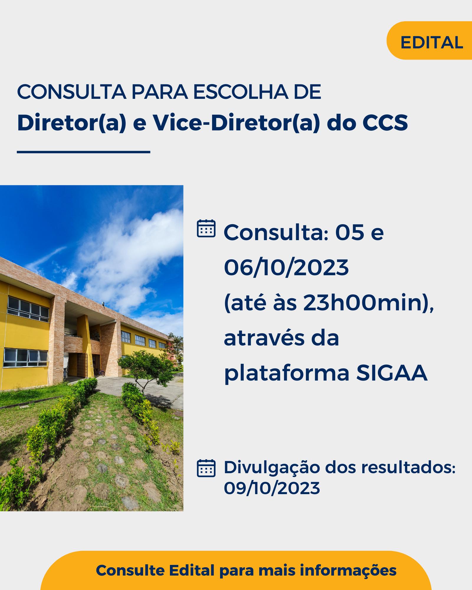 Edital de Consulta para Escolha de Diretor(A) e Vice-Diretor(A) do Centro de Ciências da Saúde - CCS 2024-2027 - (5 e 6 de outubro de 2023)