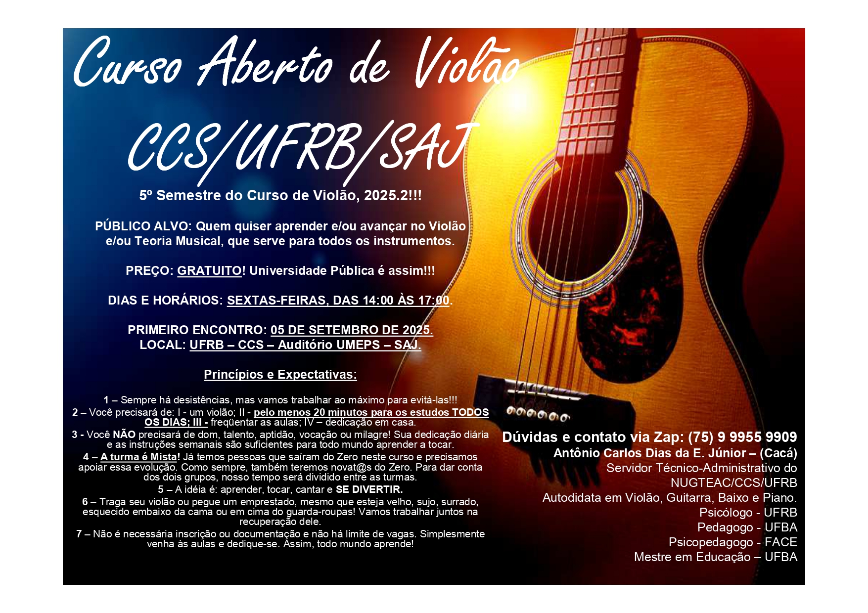 Início da 5ª turma do Curso de Violão - 2025.2. Participe!