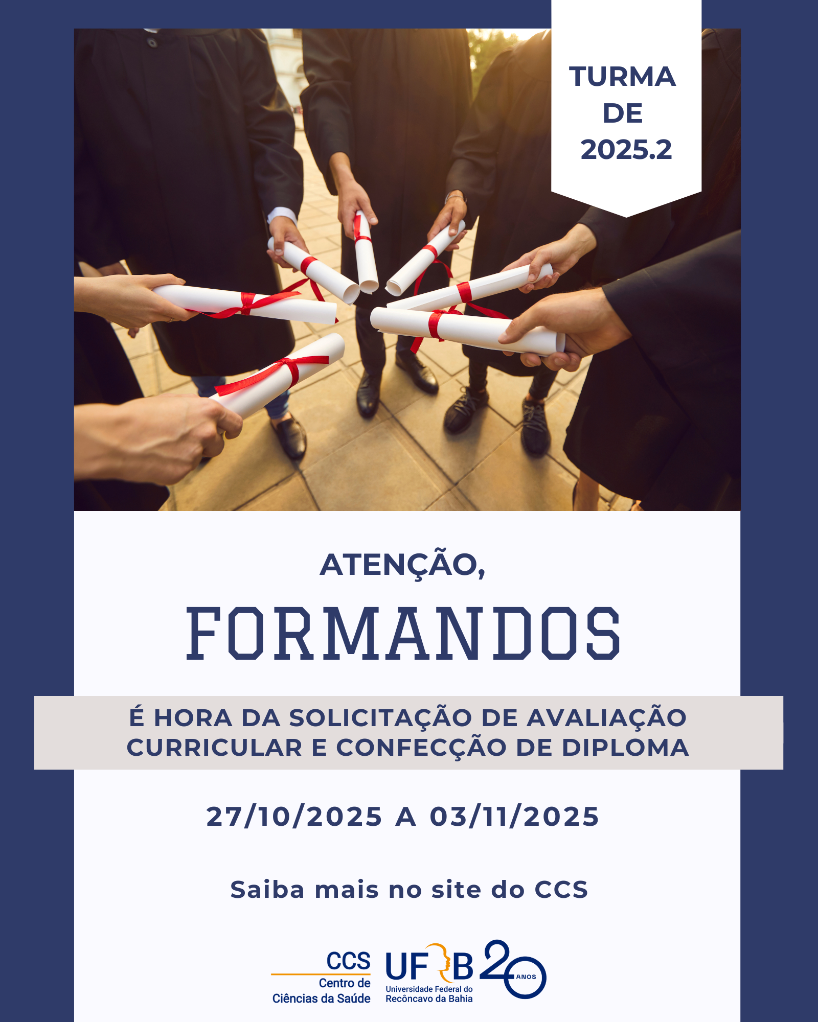 O Centro de Ciências da Saúde (CCS/UFRB) informa o período e os procedimentos para abertura de processo de avaliação curricular e confecção de diploma.