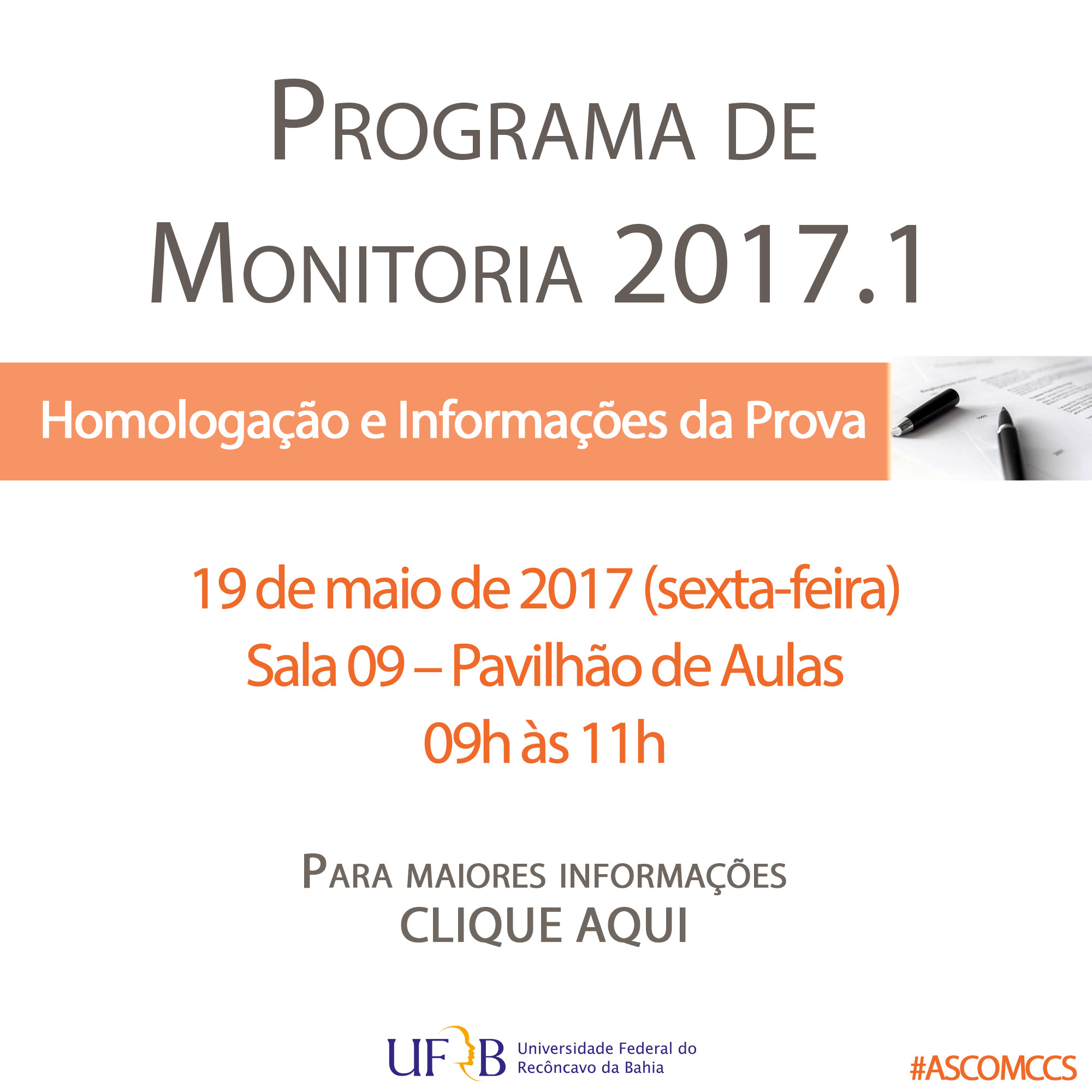 Monitoria 2017.1 - Confira a Homologação e Informações sobre a Prova!