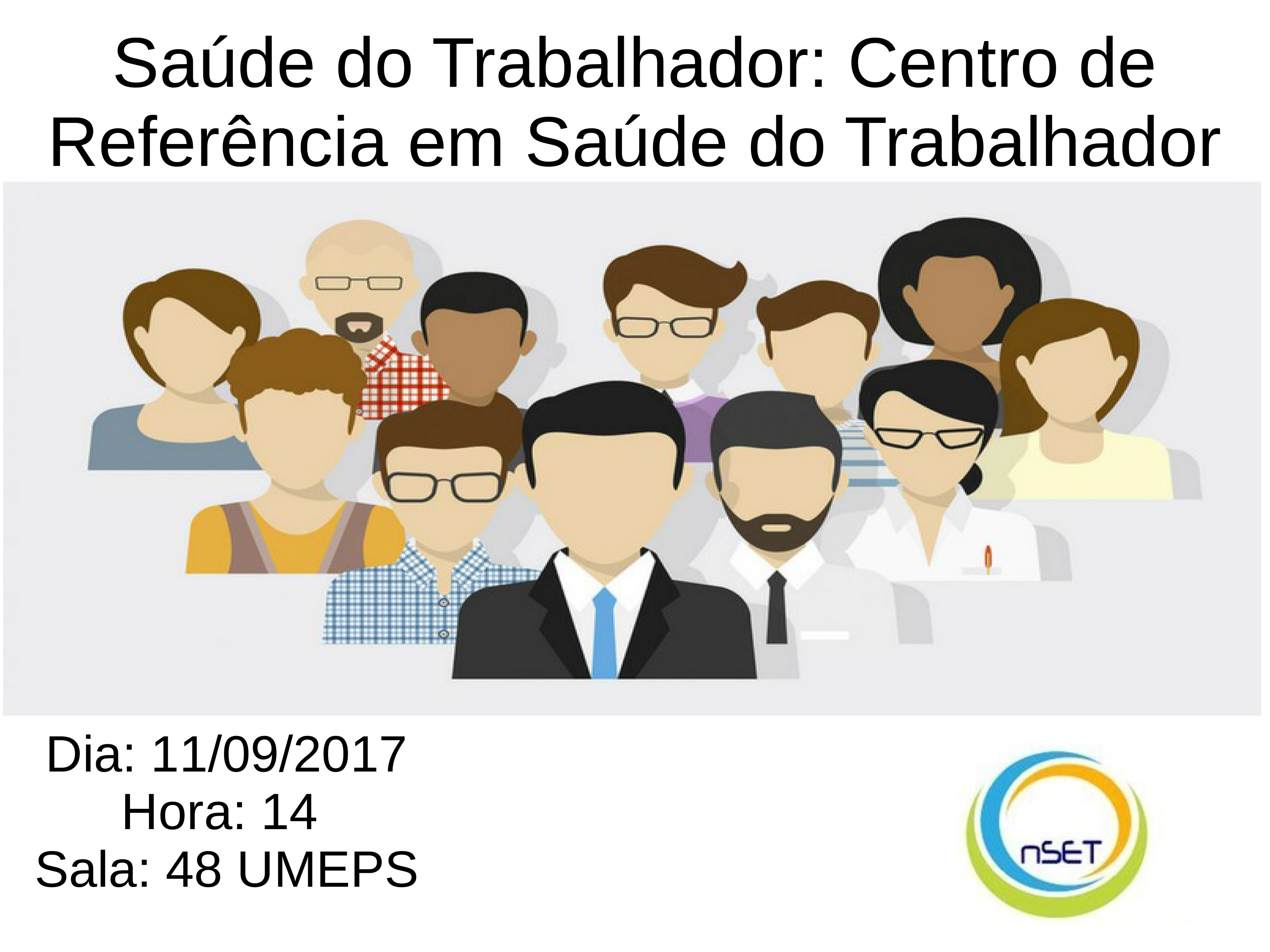 No dia 11 de Setembro, às 14 horas, sala 48 da UMEPS, acontece a Sessão Científica do NSET - Tema: Saúde do Trabalhador: Centro de Referência em Saúde do Trabalhador. O evento contará com a participação da enfermeira Rosany Maria Souza Santos e terá a duração de 1 hora.