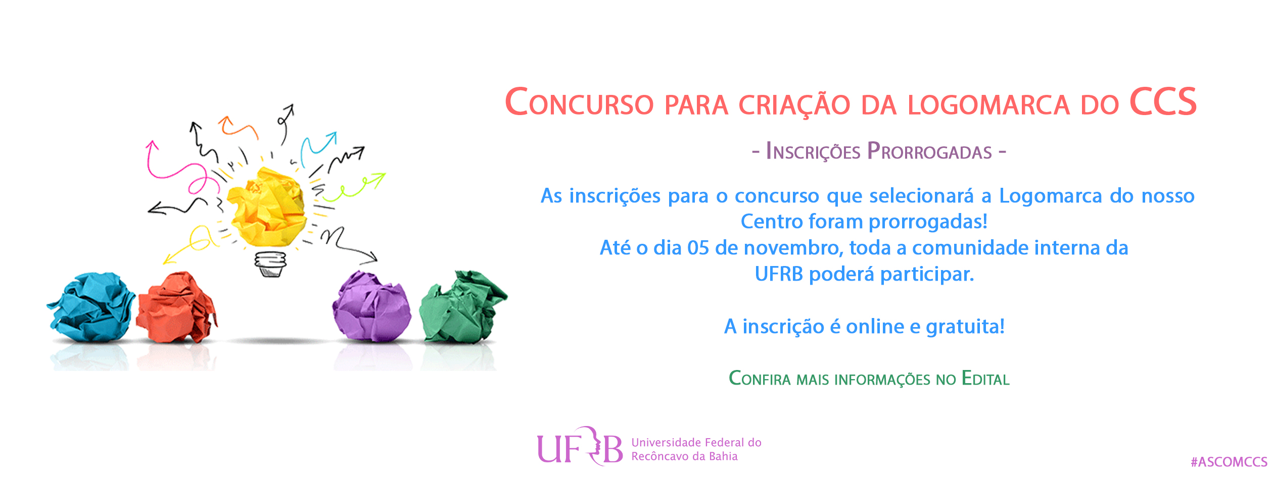 O Centro de Ciências da Saúde - CCS da Universidade Federal do Recôncavo da Bahia - UFRB torna público o edital referente ao concurso para a criação da sua logomarca. O concurso tem a finalidade de definir a logomarca que melhor consiga expressar a missão e a denominação do Centro.