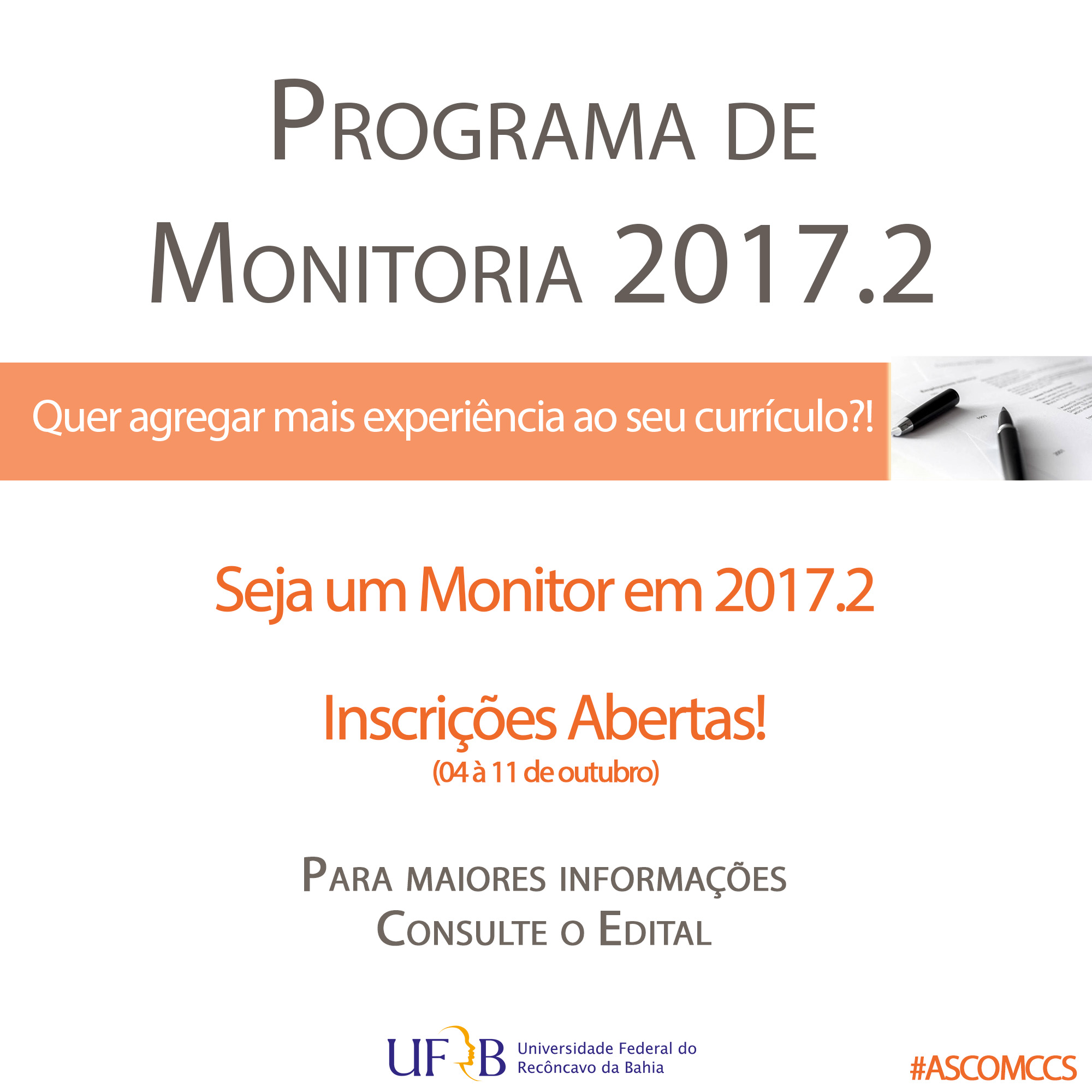 Programa de Monitoria 2017.2 - Inscrições Abertas!