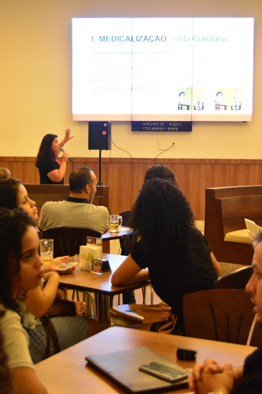 O evento, em nossa cidade, aconteceu em bares e restaurantes e contou com a palestra de seis docentes que abordaram os seguintes temas: relações de trabalho (Prof. Roberval Passos); dislipidemia (Prof. Marconi Souza); memória e envelhecimento (Profa. Kelly Atalaia); recursos hídricos (Prof. Dourival Souza); medicalização no contexto escolar (Profa. Adriana Lopes); e drogas e redução de danos (Prof. Rafael Coelho).