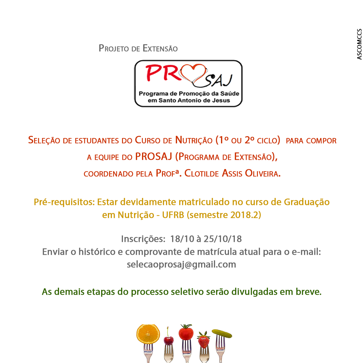 Seleção de Estudantes de Nutrição para o PROSAJ