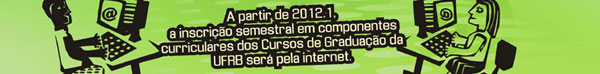 A partir do primeiro semestre de 2012, a inscrição em componentes curriculares em cursos de graduação da Universidade Federal do Recôncavo da Bahia (UFRB) será pela internet. A inscrição online é um importante passo da modernização dos processos da Universidade e está sendo coordenado pela Superintendência de Regulação e Registros Acadêmicos, com apoio da Pró-reitoria de Graduação e da Coordenação de Tecnologia da Informação.