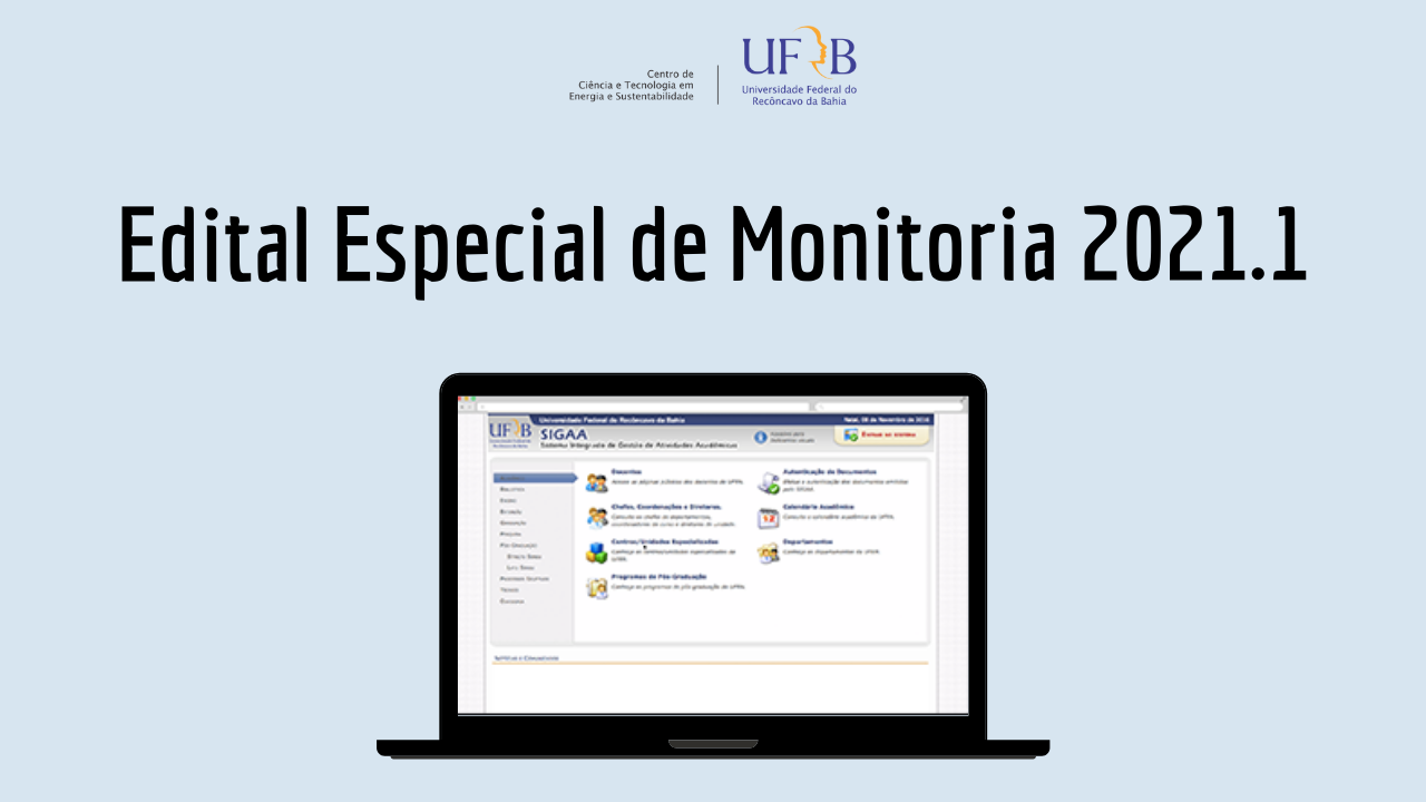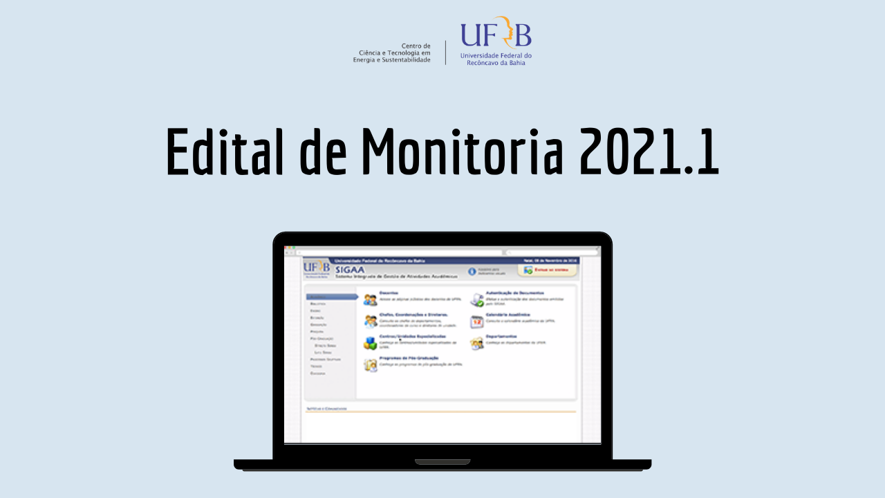 O Centro de Ciência e Tecnologia em Energia e Sustentabilidade da Universidade Federal do Recôncavo da Bahia publica o Edital Interno N° 03/2021 de seleção de estudante...