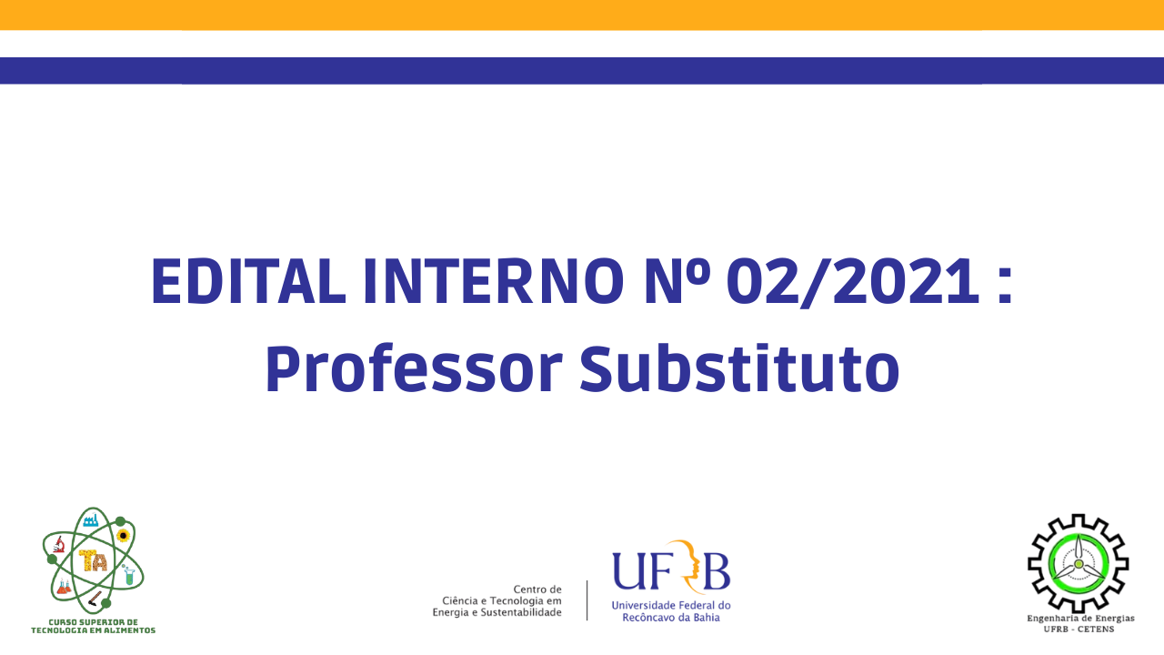 O Centro de Ciência e Tecnologia em Energia e Sustentabilidade da Universidade Federal do Recôncavo da Bahia torna público o Edital Interno N.º 02/2021 do Processo Seletivo para a...