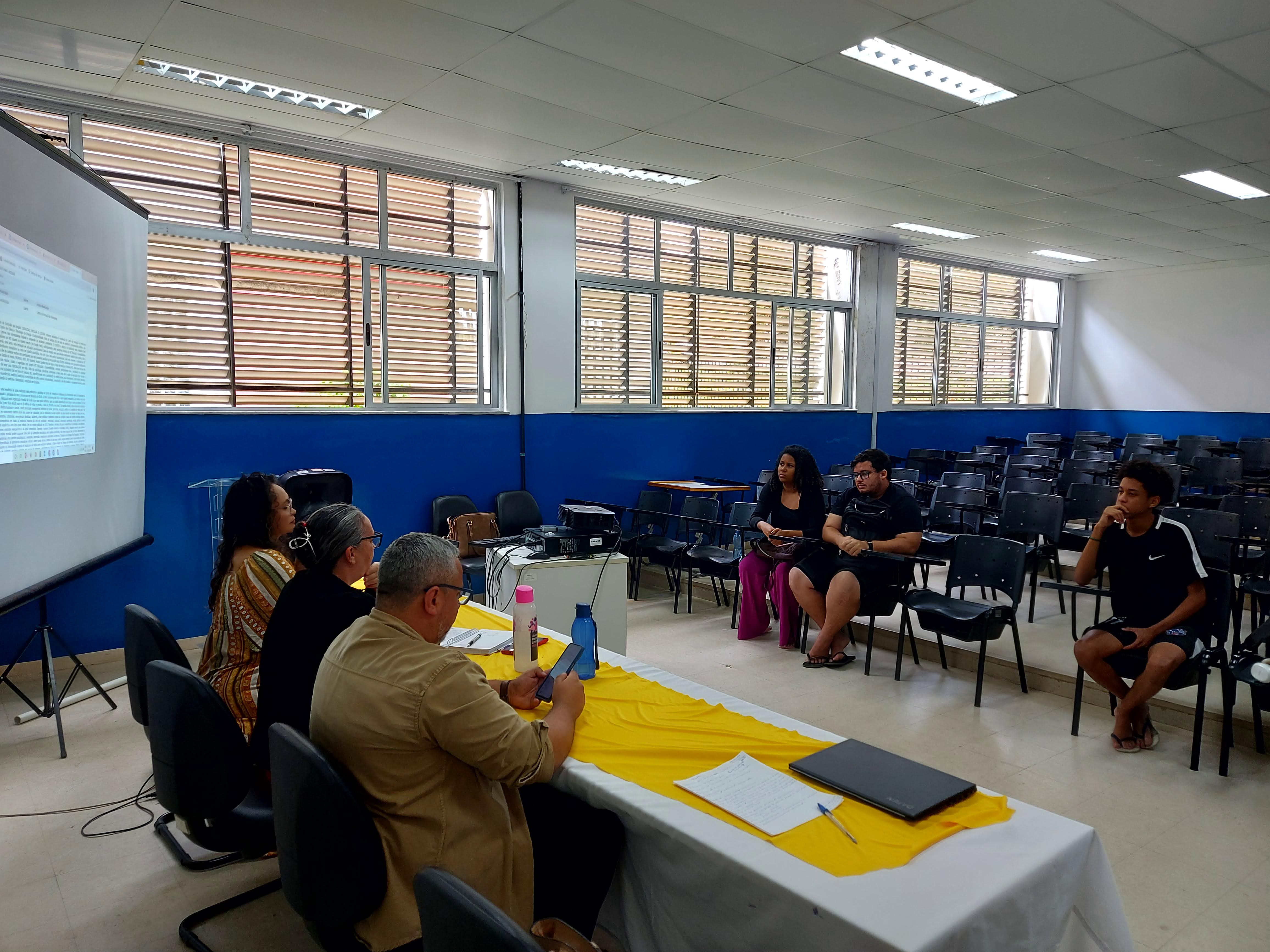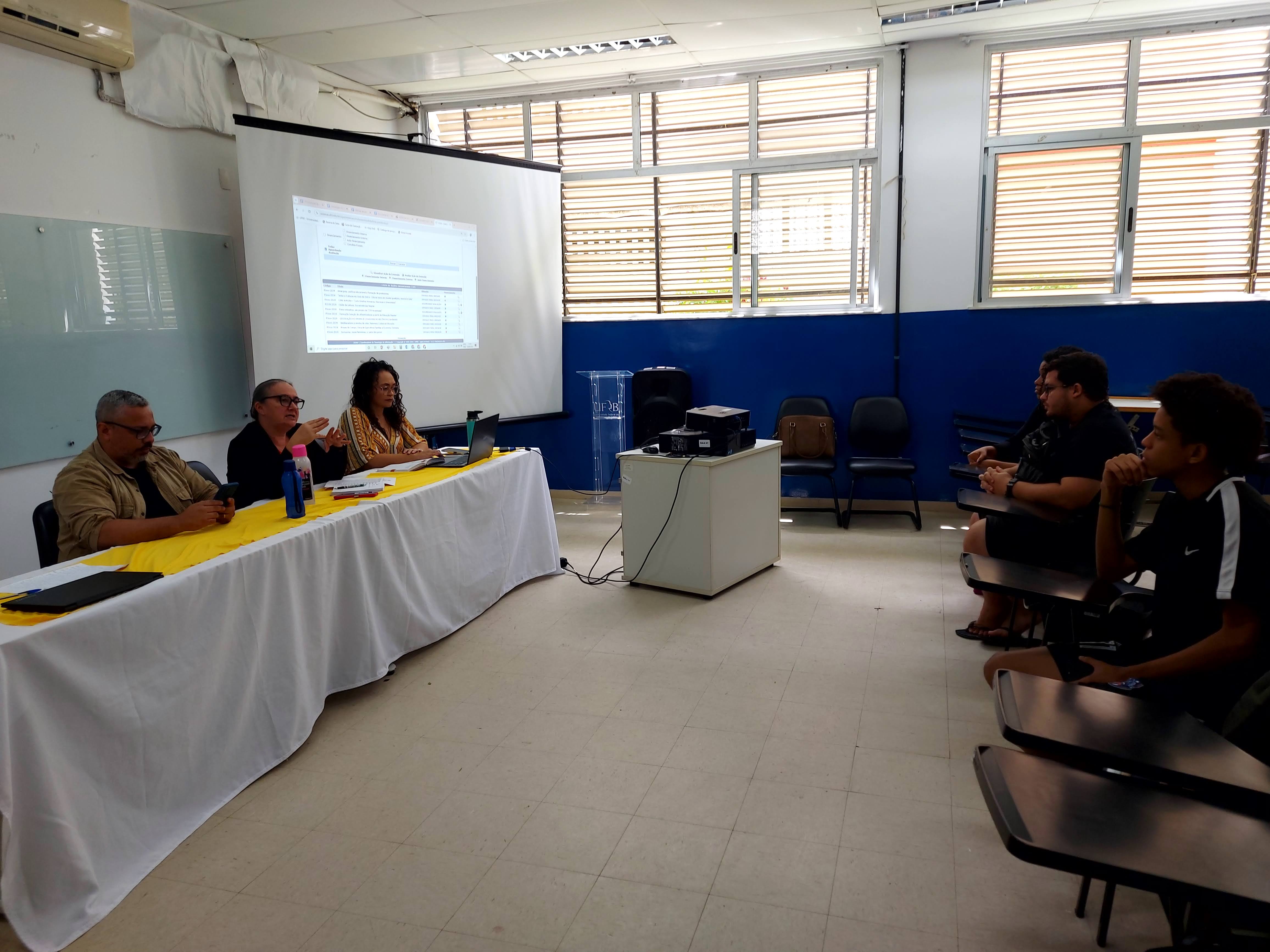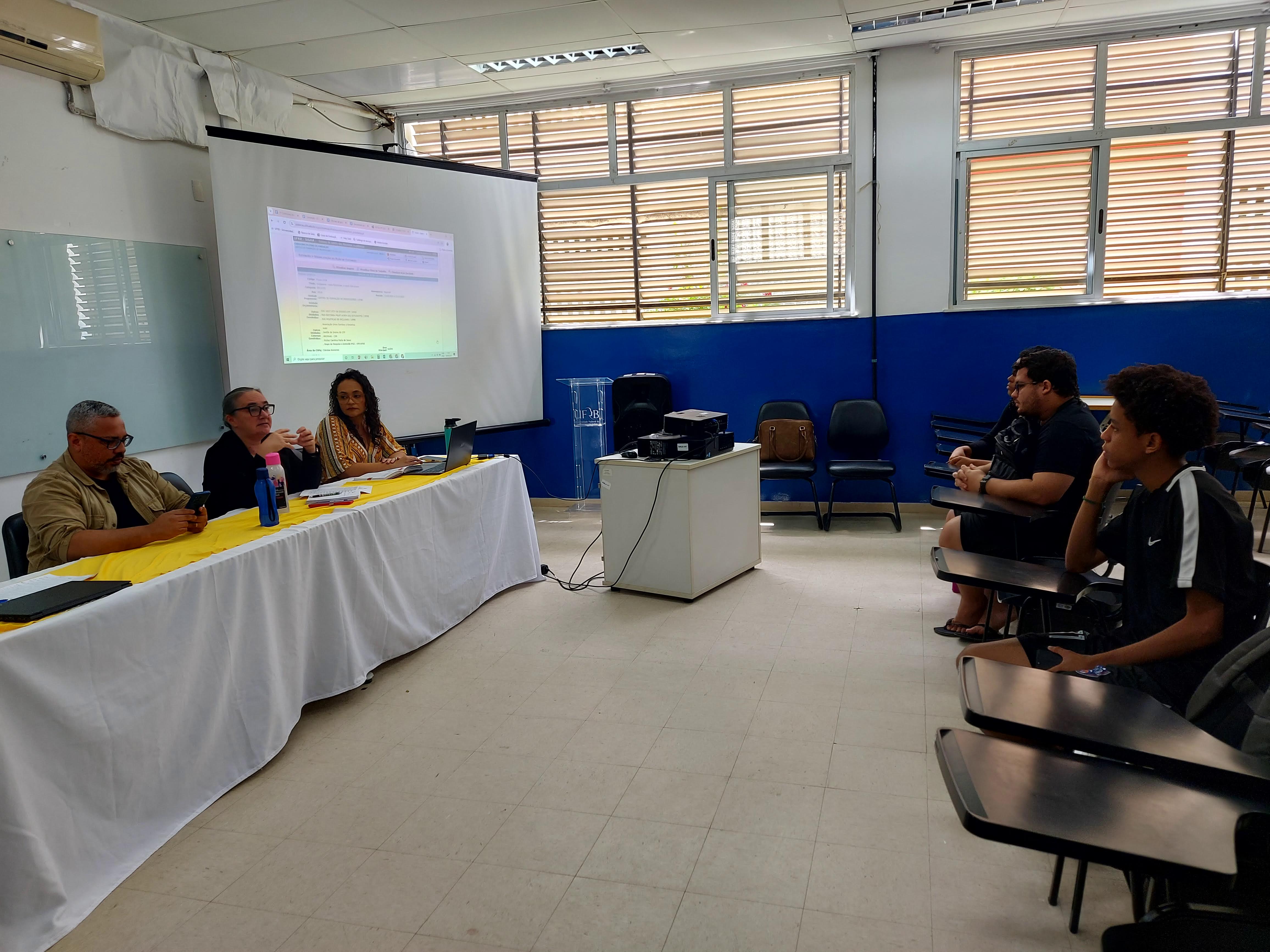 No dia 19 de agosto, a direção de centro, representada pela Dra. Creuza Souza Silva e por Dr. Fernando Henrique Tisque dos Santos, conjuntamente com a Gestora de Extensão, Dra. Carolina Filipaki de Carvalho, reuniram-se com os representantes dos diretórios e centros acadêmicos dos cursos de graduação do Centro de Formação de Professores, a fim de informar os estudantes acerca das ações extensionistas realizadas no campus. Na ocasião, a Gestão de Extensão apresentou projetos de intervenção cultural para o CFP, que serão desenvolvidos em breve.