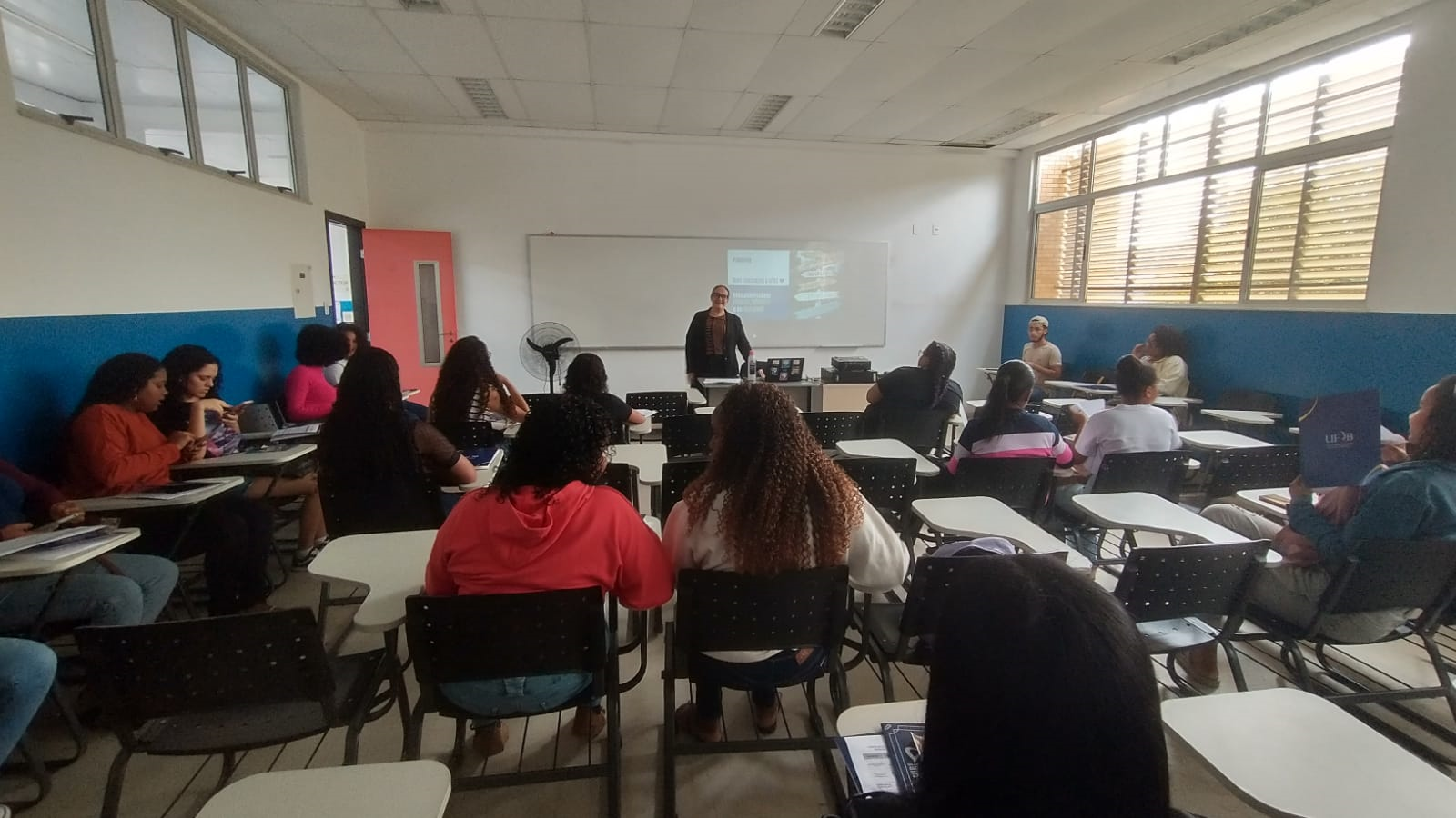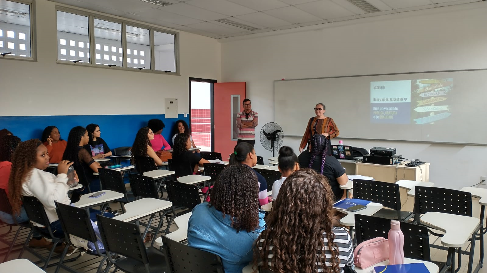 A Diretora de Centro, Profa. Dra. Creuza Souza Silva, participou nesta manhã (02), de atividade de recepção às (aos) ingressantes do curso de Licenciatura em Pedagogia. Na atividade, a Diretora deu as boas-vindas, conheceu às/aos novas/os estudantes e apresentou, de forma breve, o Centro de Formação de Professores da UFRB.