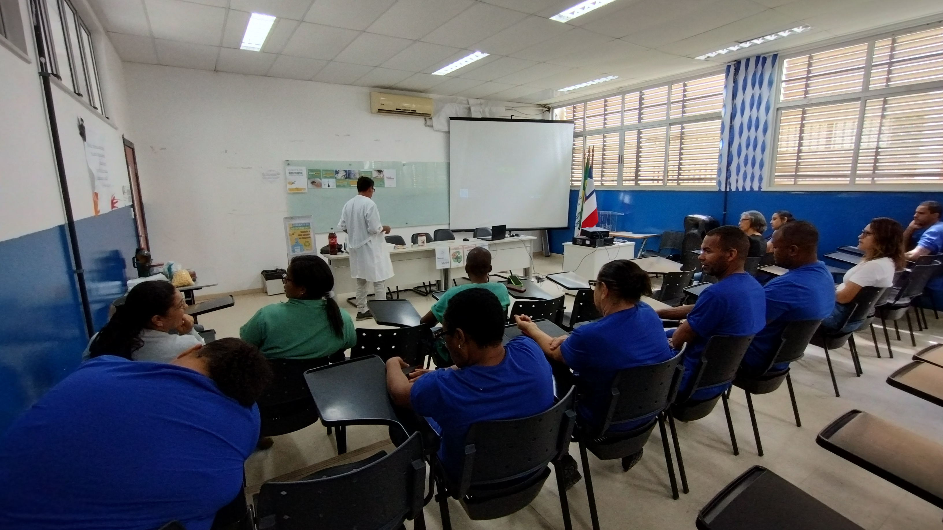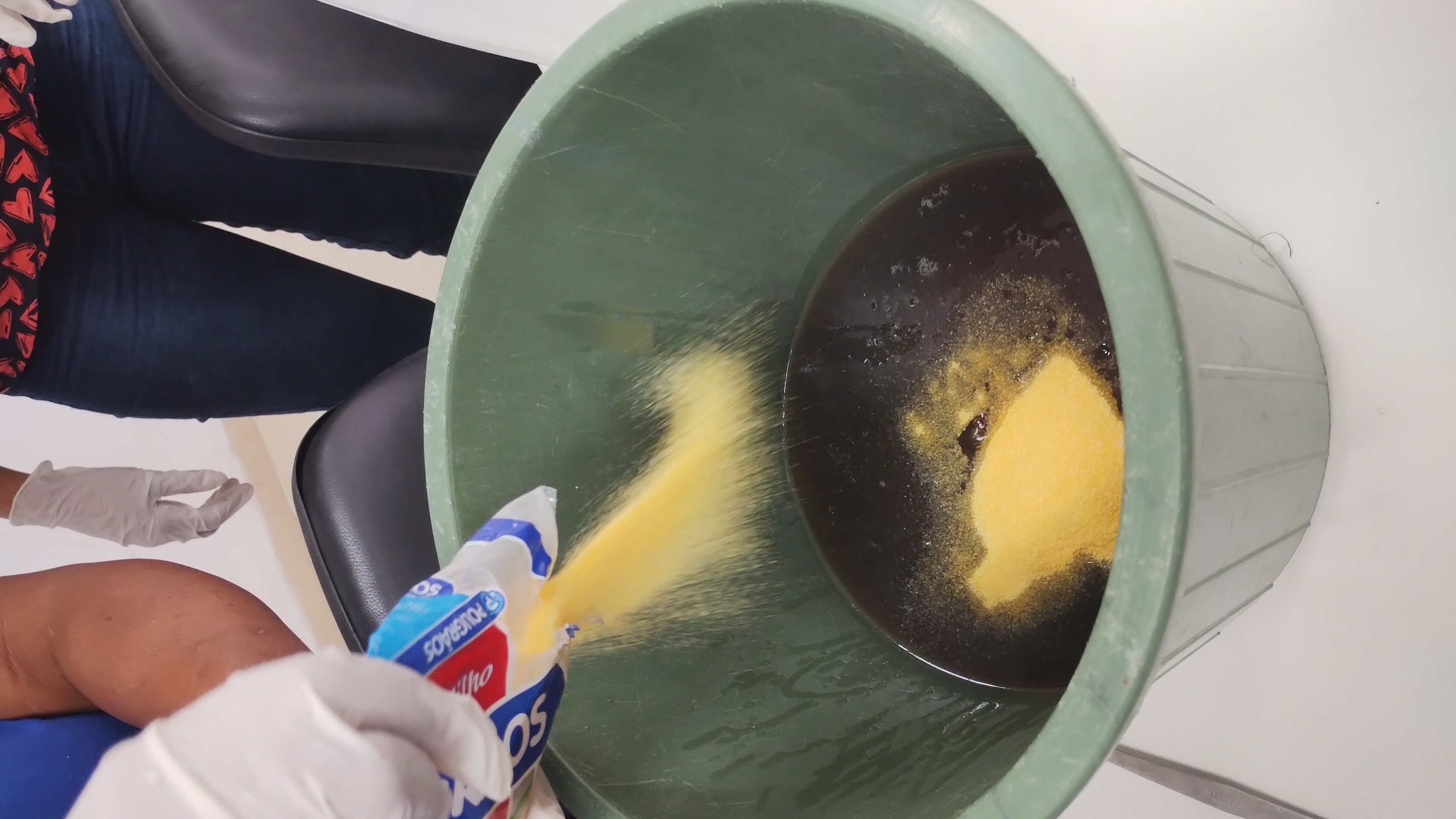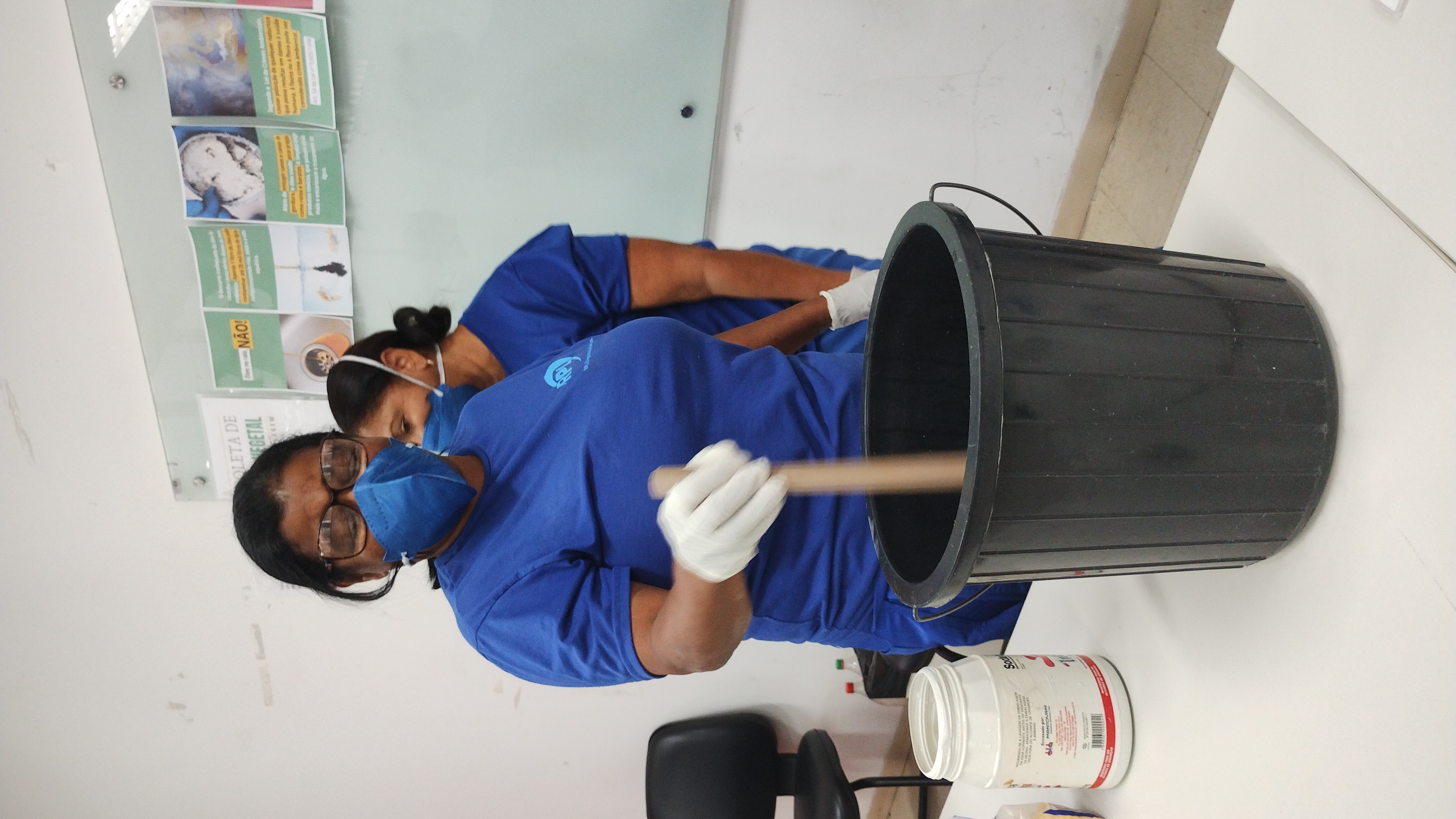 Após a explicação teórica e a exibição de um vídeo demonstrativo, três voluntárias participaram da parte prática, realizando a mistura e o preparo conforme as orientações recebidas. Ao final, a mistura foi deixada para repousar, e devido ao tempo de secagem, o resultado final será divulgado posteriormente nas redes sociais do CFP. O sabão produzido será distribuído entre os participantes da oficina, e o excedente ficará disponível para a comunidade acadêmica na portaria do Pavilhão Administrativo.