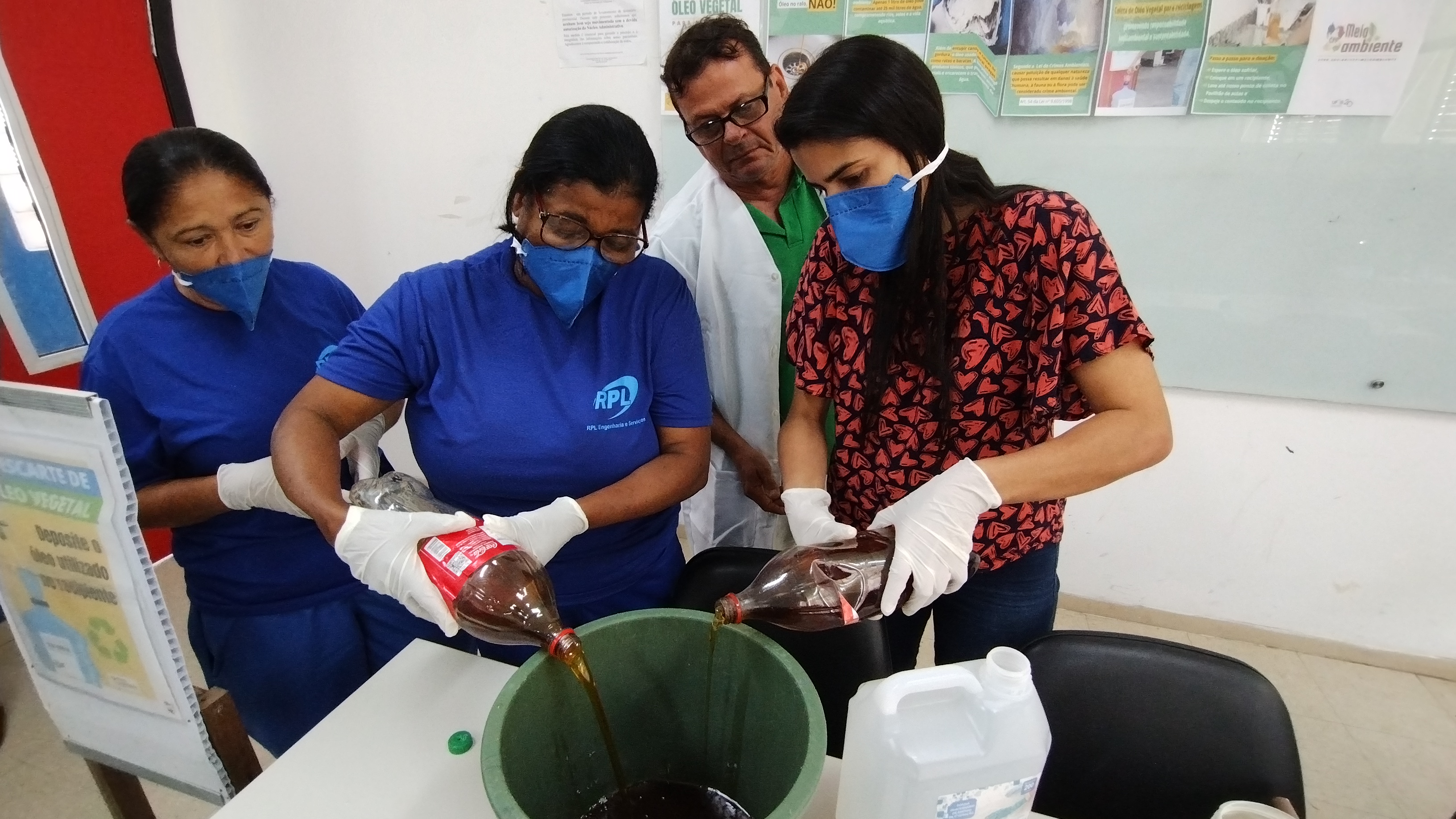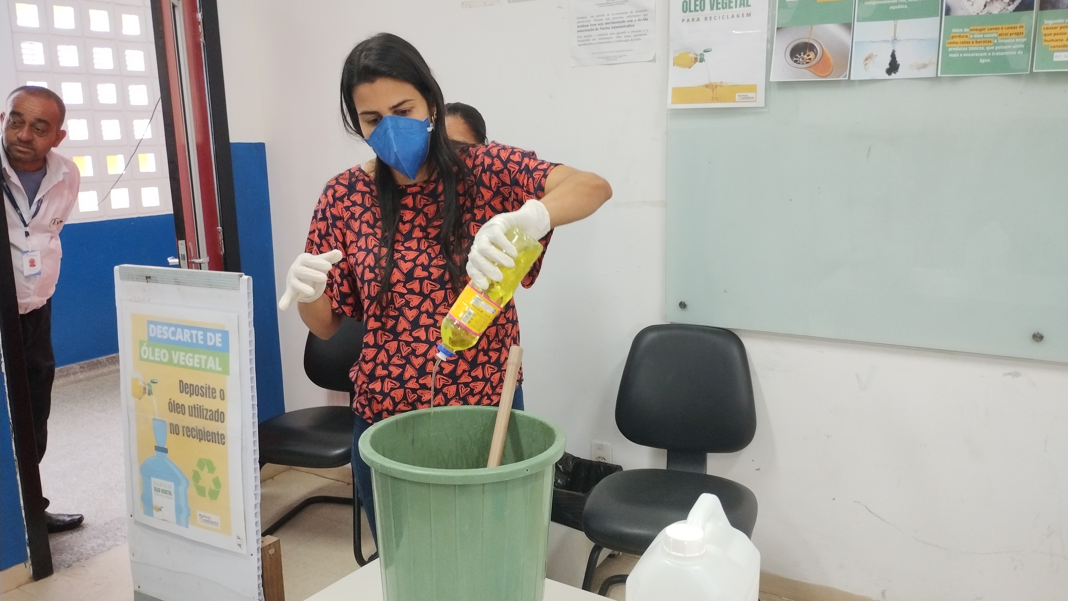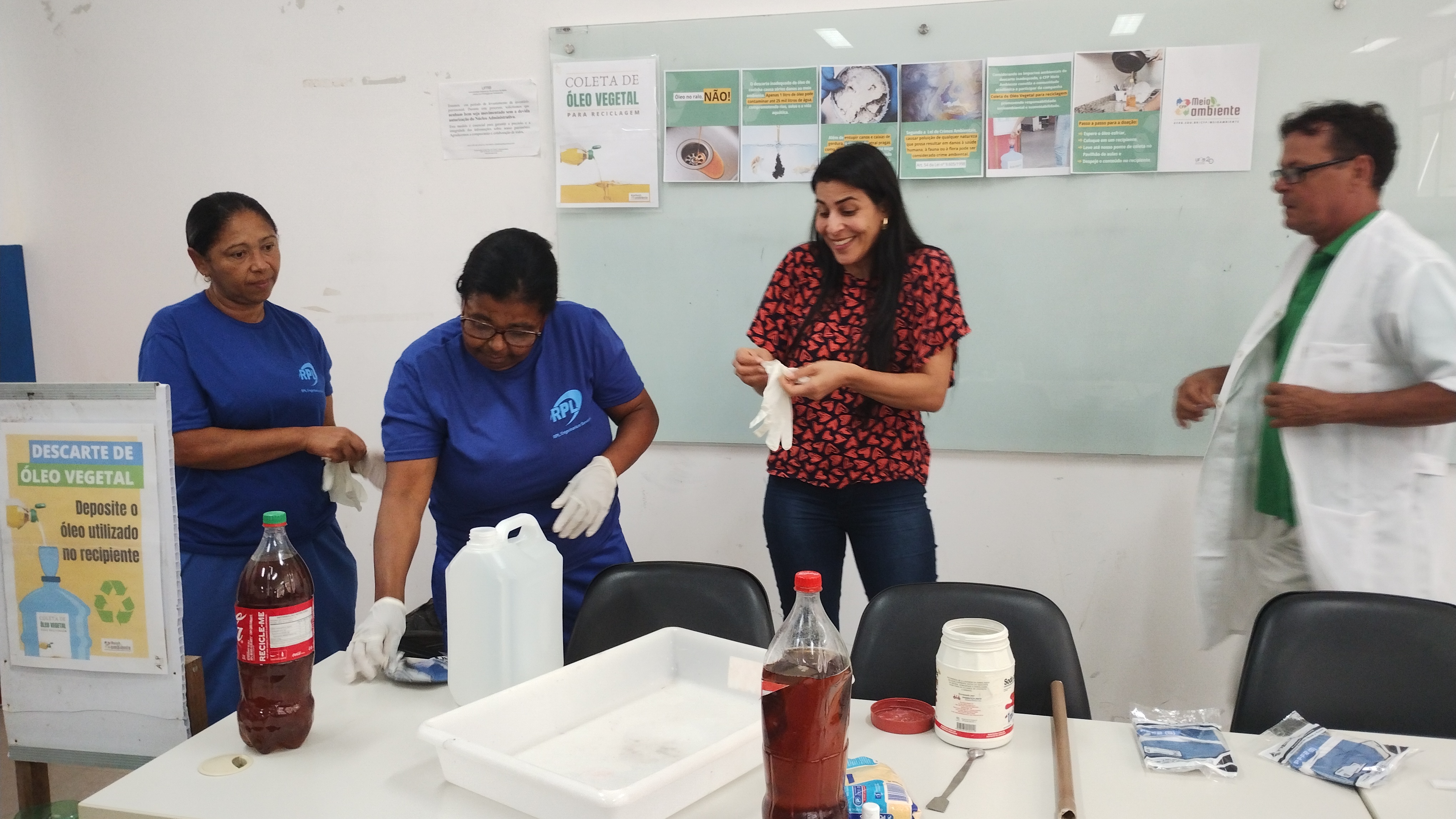 Durante a oficina, Evandro destacou a importância do descarte correto do óleo de cozinha, explicando que, mesmo em pequenas quantidades, ele pode contaminar grandes volumes de água, além de solidificar e causar entupimentos em encanamentos e caixas de gordura, gerando mau cheiro e atraindo insetos e roedores.