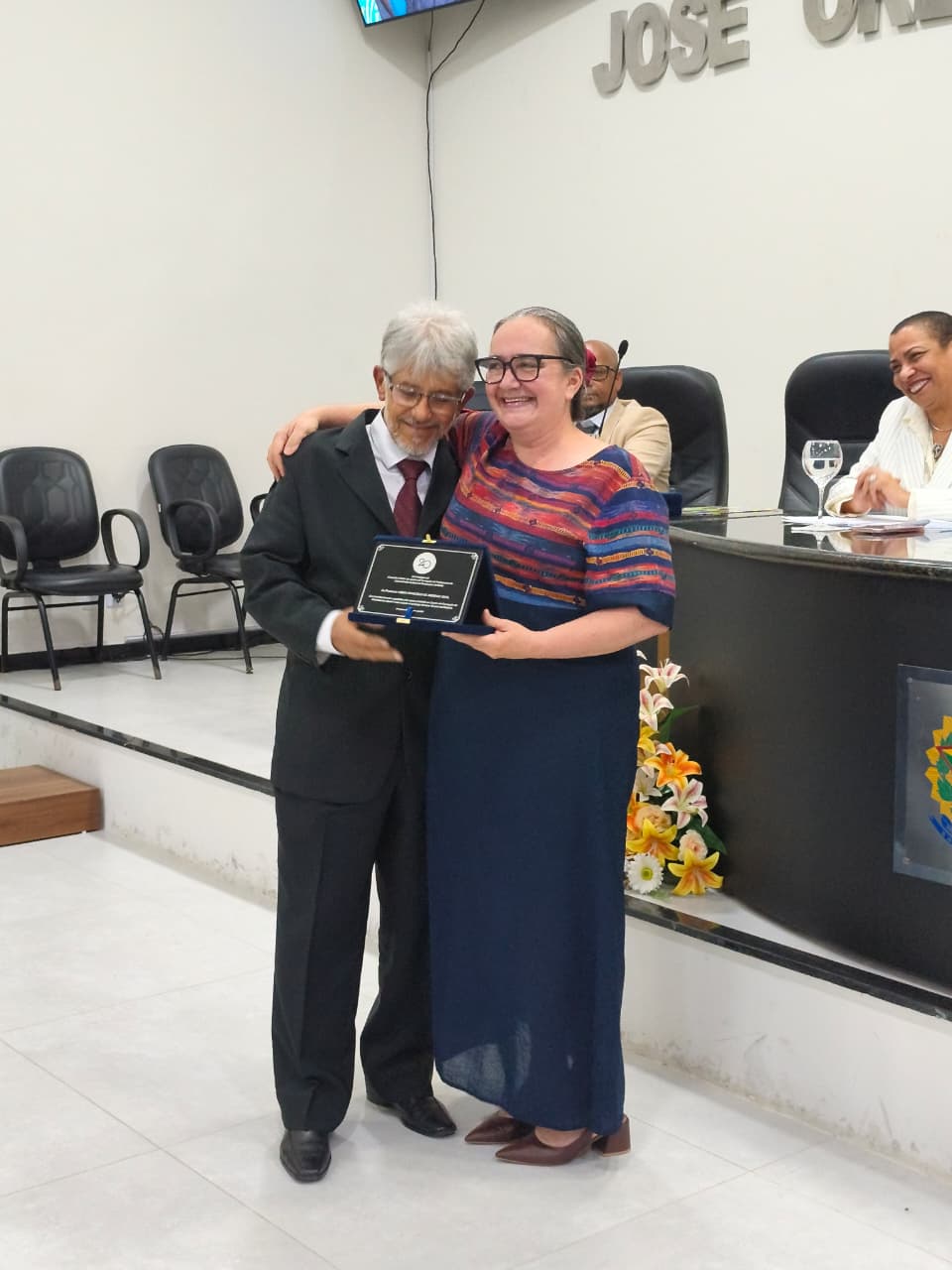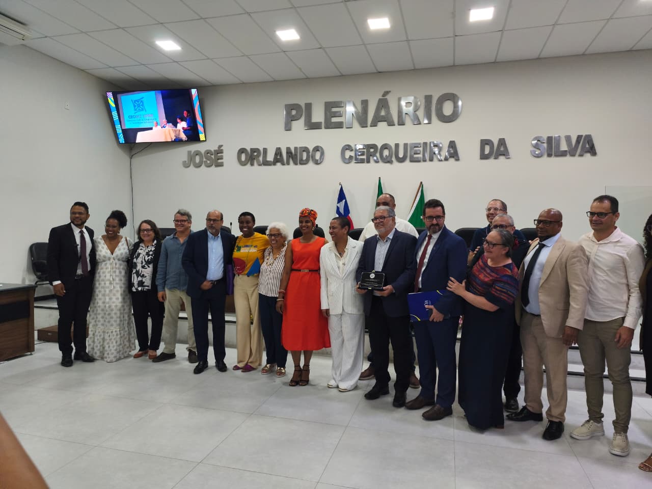 A solenidade contou com a presença da reitora da UFRB, professora Georgina Gonçalves dos Santos, que recebeu oficialmente a homenagem em nome da instituição.