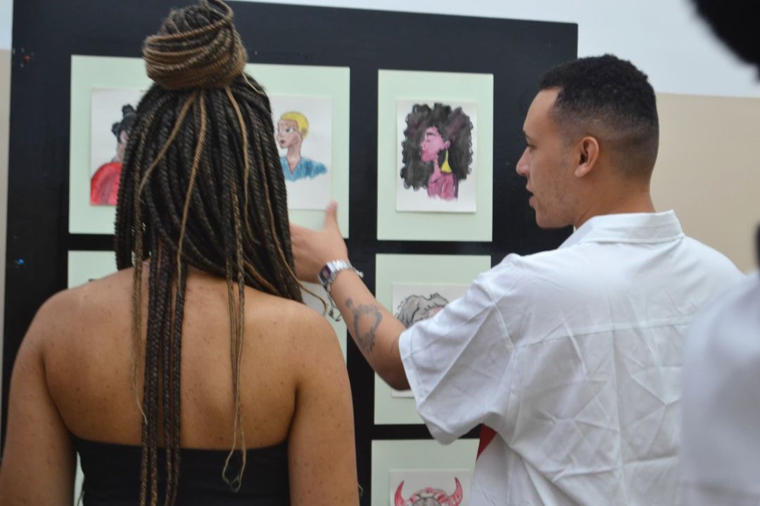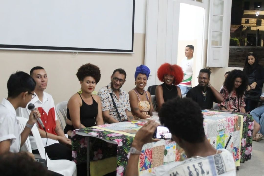 - Mesa de conversa com os artistas expositores, onde cada um contou um pouco da sua história, dificuldades vividas e inspirações. A mesa contou com a presença de Flávio Costa @flaviuoo, Kleyson Otun Elebogi @k.r.assis, Milena Medeiros @milenamedeiros4481, Marcus Matraca @marcusmatraca, Suzi Jardim @sispovodoteatro, Taiane Neves @eu_taineves, Van Couto @couto.van, Vitória BO @v.boliveira e como mediadora Julia Costa @midori_ju.